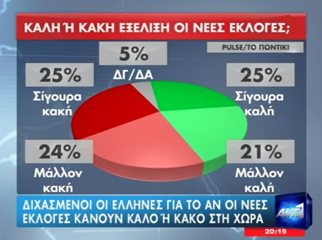 Παράλληλα, οι πολίτες εμφανίζονται διχασμένοι σχετικά με το αν είναι οι εκλογές καλή ή κακή λύση για τη χώρα αυτή τη στιγμή.