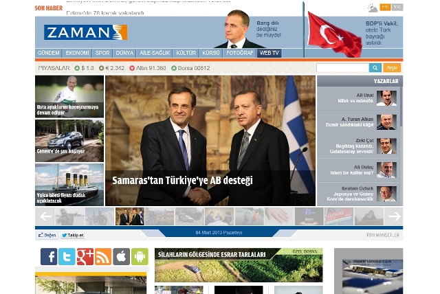 Η εφημερίδα Zaman δημοσιεύει εκτενές ρεπορτάζ από την κοινή συνέντευξη Τύπου και τα θέματα που απασχόλησαν τη συνάντηση των δύο ηγετών. Επικεντρώνεται ιδιαίτερα στις δηλώσεις του Έλληνα πρωθυπουργού για την ελληνική στήριξη του τουρκικού αιτήματος για ένταξη στην Ε.Ε.