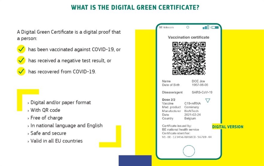 Από την 1η Ιουνίου θα είναι έτοιμη η Ελλάδα να εκδίδει το ψηφιακό πιστοποιητικόCovid-19, καθώς ήδη έχει περάσει με επιτυχία το τεστ προσομοίωσης. Το ψηφιακό πράσινο πιστοποιητικό αποτελεί στην πράξη μια ψηφιακή απόδειξη ότι ένα πρόσωπο έχει εμβολιαστεί κατά της πανδημίας, είτε έχει αρνητικό τεστ για τον κορονοϊό είτε έχει αναρρώσει από τη νόσο Covid-19. Στόχος του πιστοποιητικού είναι να διευκολυνθεί η ασφαλής ελεύθερη κυκλοφορία των πολιτών εντός της ΕΕ. Για «εργαλείο διευκόλυνσης και όχι διακρίσεων» είχε κάνει λόγο εξ αρχής ο υπουργός Ψηφιακής Διακυβέρνησης, Κυριάκος Πιερρακάκης.