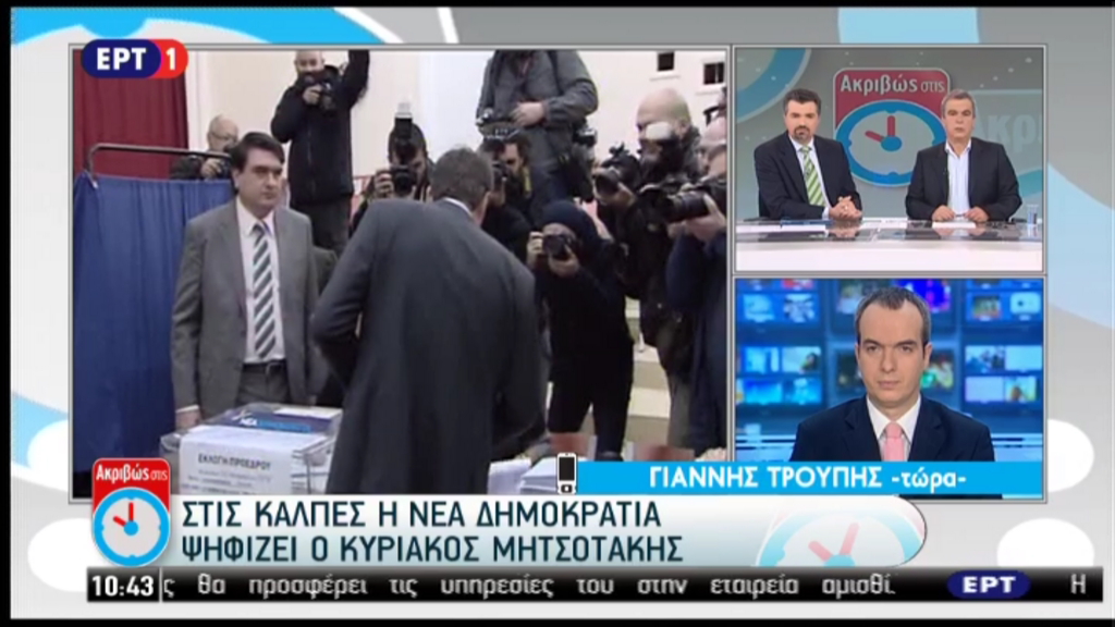 Ψηφίζει ο Κυριάκος Μητσοτάκης – ΤΩΡΑ Enikos Newsroom 10:43, Κυριακή 10 Ιανουαρίου 2016 πολιτική Το εκλογικό του δικαίωμα ασκεί αυτή την ώρα ο Κυριάκος Μητσοτάκης, σε εκλογικό κέντρο της Κηφισιάς. ΚΥΡΙΑΚΟΣ ΜΗΤΣΟΤΑΚΗΣ ΜΗΤΣΟΤΑΚΗΣ ΝΕΑ ΔΗΜΟΚΡΑΤΙΑ Μοιράσου το: σχολίασε κι εσύ (0 σχόλια) Ακολουθήστε το enikos.gr στο Google News και μάθετε πρώτοι όλες τις ειδήσεις Δείτε όλες τις τελευταίες ειδήσεις από την Ελλάδα και τον Κόσμο στο enikos.gr Ειδήσεις Ροή Ειδήσεων 51 λεπτά πριν Εκτός ευρωομάδας ΣΥΡΙΖΑ ο Νίκος Παππάς μετά την επίθεση στον δημοσιογράφο Νίκο Γιαννόπουλο – Η μήνυση και οι νέες δηλώσεις 1 ώρα πριν «Αγριεύουν» οι αγρότες: «Δεν συντρέχει λόγος συνάντησης με τον πρωθυπουργό» – Ώρα αποφάσεων στη σύσκεψη της Πέμπτης 1 ώρα πριν Κυψέλη: Χωρίς την οικογένειά της δίπλα της απολογήθηκε η 16χρονη – «Της είχε επιτεθεί κάποιος για να την βιάσει, φοβήθηκε και κυκλοφορούσε με μαχαίρι» 45 λεπτά πριν Politico: Το πρόβλημα της Ευρώπης δεν είναι το Βέλγιο αλλά ο Ντόναλντ Τραμπ 3 ώρες πριν Αλεξανδρούπολη: Πολυοργανική ανεπάρκεια λόγω υποσιτισμού η αιτία θανάτου του 3χρονου αγοριού 1 ώρα πριν Μυστήριο με τεράστιες κυκλικές πέτρες 200 κιλών – Ανακαλύφθηκαν τυχαία κατά τη διάρκεια οδικών έργων και κανείς δεν ξέρει από πού προέρχονται 2 ώρες πριν Ύπνος: Ειδικός εξηγεί τον πραγματικό λόγο που ξυπνάτε στις 4 τα ξημερώματα – Ο ρόλος των ορμονών και του κιρκάδιου ρυθμού 3 ώρες πριν Αριθμολογία: Οι άνθρωποι που έχουν γεννηθεί αυτές τις 4 ημερομηνίες, είναι τρυφεροί και αγαπούν ανιδιοτελώς 15 ώρες πριν 20 χρόνια τα Χριστούγεννα ξεκινούν στα Public με μεγάλη ποικιλία σε δώρα! 16 λεπτά πριν Ελένη Κρίτα για το reunion του «Παρά Πέντε»: «Ήταν πραγματικά σαν να μην είχαμε χαθεί ποτέ» 30 λεπτά πριν Κύπελλο Ελλάδας: Αυτά είναι τα ζευγάρια στα νοκ-άουτ, οι διασταυρώσεις στους «8» κι ο δρόμος προς τον τελικό 45 λεπτά πριν Politico: Το πρόβλημα της Ευρώπης δεν είναι το Βέλγιο αλλά ο Ντόναλντ Τραμπ 51 λεπτά πριν Εκτός ευρωομάδας ΣΥΡΙΖΑ ο Νίκος Παππάς μετά την επίθεση στον δημοσιογράφο Νίκο Γιαννόπουλο – Η μήνυση και οι νέες δηλώσεις 51 λεπτά πριν Κύπελλο Ελλάδας: Η Μαρκό έστειλε τον ΠΑΟΚ στον Ολυμπιακό… μέσω Ατρόμητου ENIKOS NETWORK Αϋπνία: Το κόλπο που θα σας βοηθήσει να κοιμηθείτε απόψε – Είναι απλό και έχει αποτέλεσμα 2,6 εκατομμύρια πολίτες έχουν ήδη εμβολιαστεί κατά της γρίπης ΕΛΣΤΑΤ: Τι δείχνουν τα νέα στοιχεία για τις ηλεκτρονικές παραγγελίες των επιχειρήσεων ΚΕΠΕ: Οι 3 διακριτές συμβολές των ΜμΕ και της μεταποίησης στην ελληνική οικονομία Χαρτογραφώντας το «σημείο χωρίς επιστροφή»: Για πρώτη φορά αποκαλύπτεται με λεπτομέρεια το ακανθώδες όριο της ατμόσφαιρας τ... Η Google καταργεί τη λειτουργία «dark web report» – Πώς θα μπορούν οι χρήστες να διαγράφουν τα δεδομένα τους περισσότερα 23:13 , Τετάρτη 17 Δεκεμβρίου 2025 Εκτός ευρωομάδας ΣΥΡΙΖΑ ο Νίκος Παππάς μετά την επίθεση στον δημοσιογράφο Νίκο Γιαννόπουλο – Η μήνυση και οι νέες δηλώσεις Την πόρτα της εξόδου από την ευρωομάδα του έδειξε ο ΣΥΡΙΖΑ-ΠΣ στο ευρωβουλευτή Νίκο Παππά, έπε... 23:10 , Τετάρτη 17 Δεκεμβρίου 2025 Άκης Σκέρτσος: Μήνυση και αγωγή κατά της Ζωής Κωνσταντοπούλου θα καταθέσει ο υπουργός Επικρατείας Μήνυση και αγωγή κατά της προέδρου της Πλεύσης Ελευθερίας σκοπεύει να καταθέσει ο υπουργός Επι... 21:40 , Τετάρτη 17 Δεκεμβρίου 2025 Δημοσκόπηση MRB: Πρώτη η ΝΔ με 22,6%, στο 10,9% το ΠΑΣΟΚ – Το 80% των πολιτών στηρίζει τους αγρότες, τι λένε για Τσίπρα και Καρυστιανού Προβάδισμα 11,7 μονάδων διατηρεί 