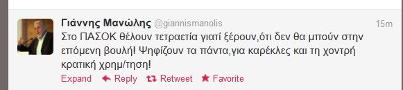Σε ένα δεικτικό σχόλιο προχώρησε νωρίτερα ο Γιάννης Μανώλης αναφερόμενος στο ΠΑΣΟΚ: