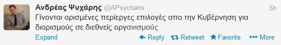 “Γίνονται ορισμένες περίεργες επιλογές απο την Κυβέρνηση για διορισμούς σε διεθνείς οργανισμούς” έγραψε ο κ. Ψυχάρης στο Twitter, “φωτογραφίζοντας” τον πρώην πρώην υπουργό.