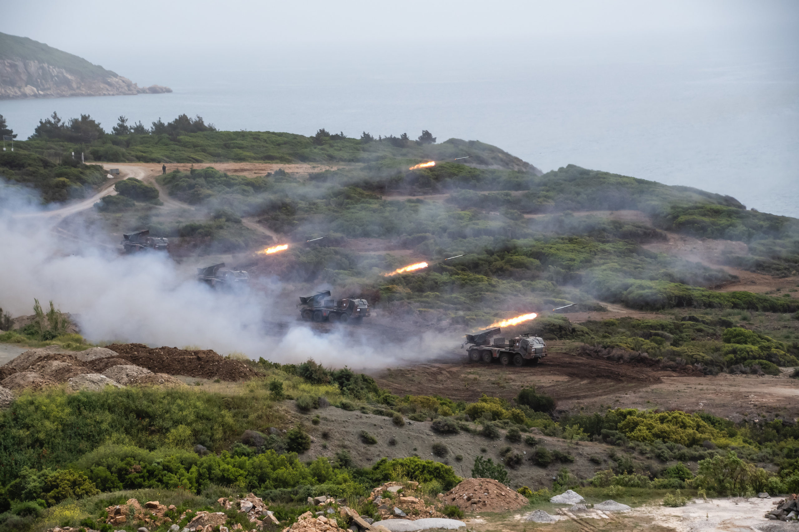 Πύρινη καταιγίδα στο Αιγαίο από το πυροβολικό του Στρατού Ξηράς. Στο βίντεο που έδωσε στη δημοσιότητα καταγράφεται καταιγισμός πυρών στο Πεδίο Βολής Πετρωτών Ροδόπης, από Μονάδες Πολλαπλών Εκτοξευτών Πυραύλων (ΠΕΠ) RΜ-70, με τη συμμετοχή προσωπικού, οπλικών συστημάτων και μέσων Μονάδων Πυροβολικού της 1ης Στρατιάς/EU-OHQ «ΑΧΙΛΛΕΑΣ».