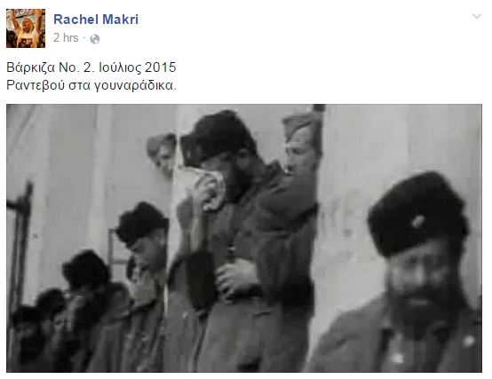 Ανέβασε φωτογραφίες του Άρη Βελουχιώτη με την υποσημείωση: «Βάρκιζα Νο. 2. Ιούλιος 2015. Ραντεβού στα γουναράδικα».