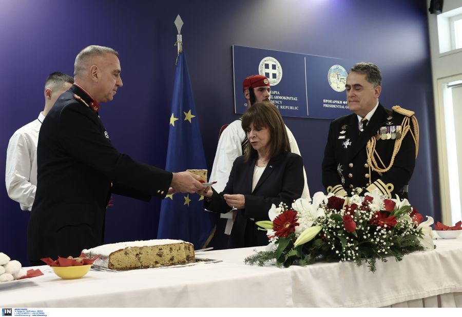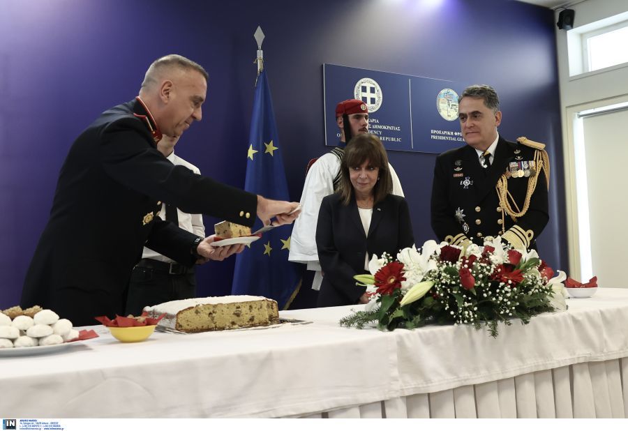 Σακελλαροπούλου: Έκοψε την πρωτοχρονιάτικη πίτα στην Προεδρική Φρουρά