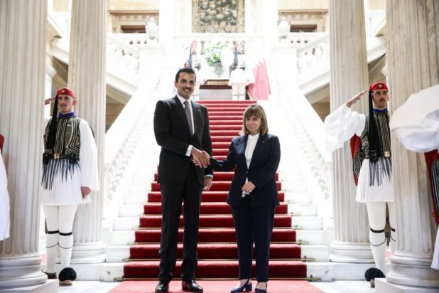 Στον σημαντικό και σταθεροποιητικό ρόλο που διαδραματίζουν Ελλάδα και Κατάρ στην ευρύτερη περιοχή μας αναφέρθηκε η Πρόεδρος της Δημοκρατίας Κατερίνα Σακελλαροπούλου υποδεχόμενη στο Προεδρικό Μέγαρο τον εμίρη του Κατάρ Σεΐχη Ταμίμ μπιν Χαμάντ αλ Θανί, ο οποίος επισκέπτεται για πρώτη φορά την Αθήνα.