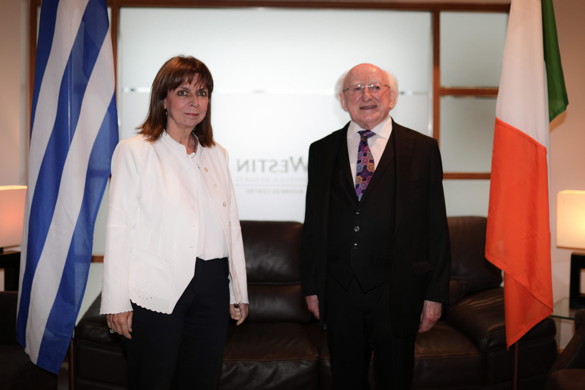«Οι δύο Πρόεδροι είχαν την ευκαιρία να επιβεβαιώσουν το άριστο επίπεδο των σχέσεων Ελλάδας-Ιρλανδίας στους τομείς αμοιβαίου ενδιαφέροντος, ενώ συζήτησαν για τον συνεχιζόμενο πόλεμο στην Ουκρανία και τις συνεπαγόμενες σοβαρές προκλήσεις που πρέπει να αντιμετωπίσει ενωμένη η Ευρώπη.