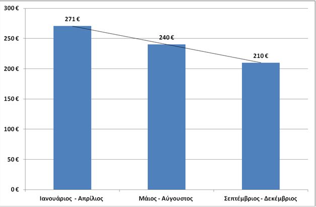 Δείτε στον πίνακα που ακολουθεί τη μέση μηνιαία Φαρμακευτική Δαπάνη ΕΟΠΥΥ ανά τετράμηνο για το 2012: