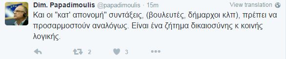 Το θέμα έσπευσε να σχολιάσει, ξεκαθαρίζοντας τη θέση του, ο ευρωβουλευτής του ΣΥΡΙΖΑ και αντιπρόεδρος του Ευρωπαϊκού Κοινοβουλίου, Δημήτρης Παπαδημούλης, μέσω του προσωπικού του λογαριασμού στο twitter:
