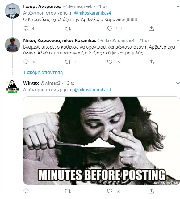 Σάλος στο Twitter με το σχόλιο Καρανίκα για τις δηλώσεις Αρβελέρ