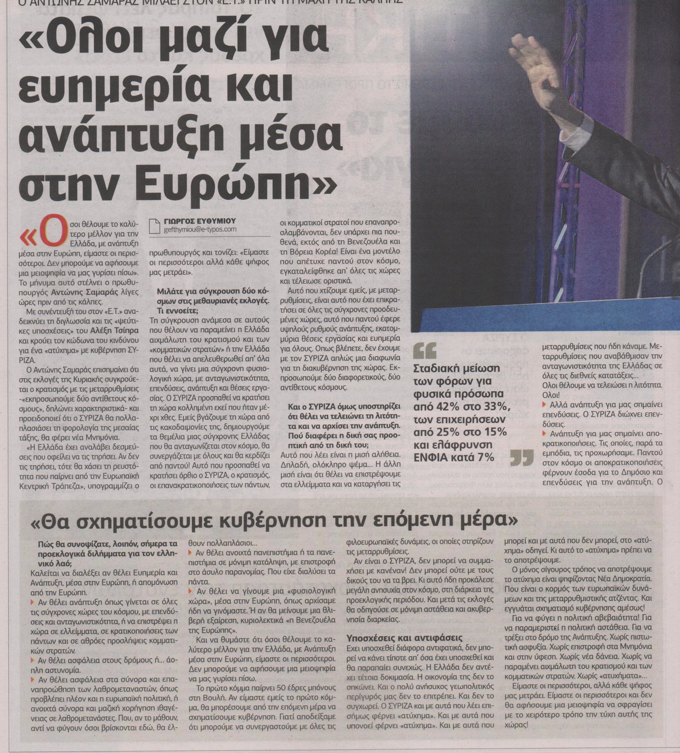 Σαμαράς: Όλοι μαζί για ευημερία μέσα στην Ευρώπη