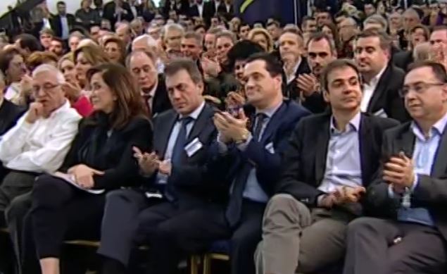 “Το θέμα του αρχηγού έκλεισε” είπε ο Αντώνης Σαμαράς με τα μέλη της Πολιτικής Επιτροπής να χειροκροτούν και την Ντόρα Μπακογιάννη να σχολιάζει χαμηλόφωνα από την πρώτη σειρά, χωρίς να χειροκροτεί.