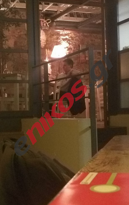 Όπως φαίνεται και στη φωτογραφία ο Έλληνας υπουργός έχει βγάλει το σακάκι του και ετοιμάζεται να γευτεί τις μεσογειακές γεύσεις του εστιατορίου.