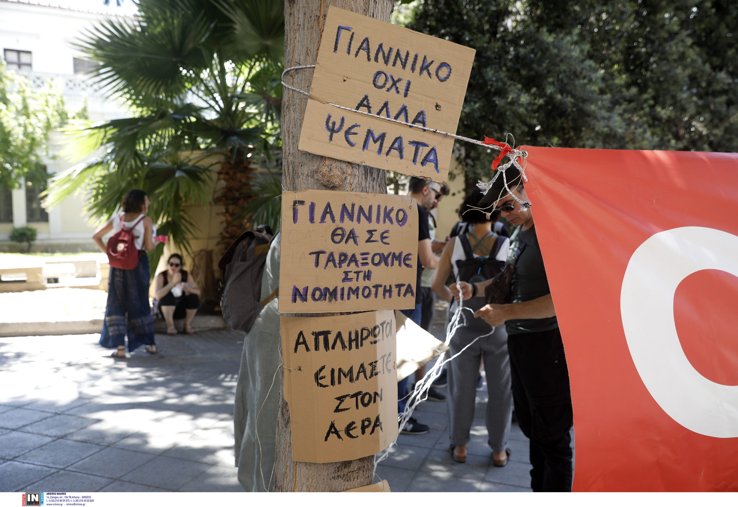Παράλληλα, έξω από την Κουμουνδούρου συγκέντρωση διαμαρτυρίας πραγματοποιούν οι εργαζόμενοι της εφημερίδας «Αυγή», οι οποίοι εκφράζουν την αντίθεσή τους για την απόφαση του κόμματος να αναστείλει την έκδοση του καθημερινού φύλλου της εφημερίδας και διεκδικούν τα δεδουλευμένα τους, καθώς και σαφείς απαντήσεις για το μέλλον του εντύπου.