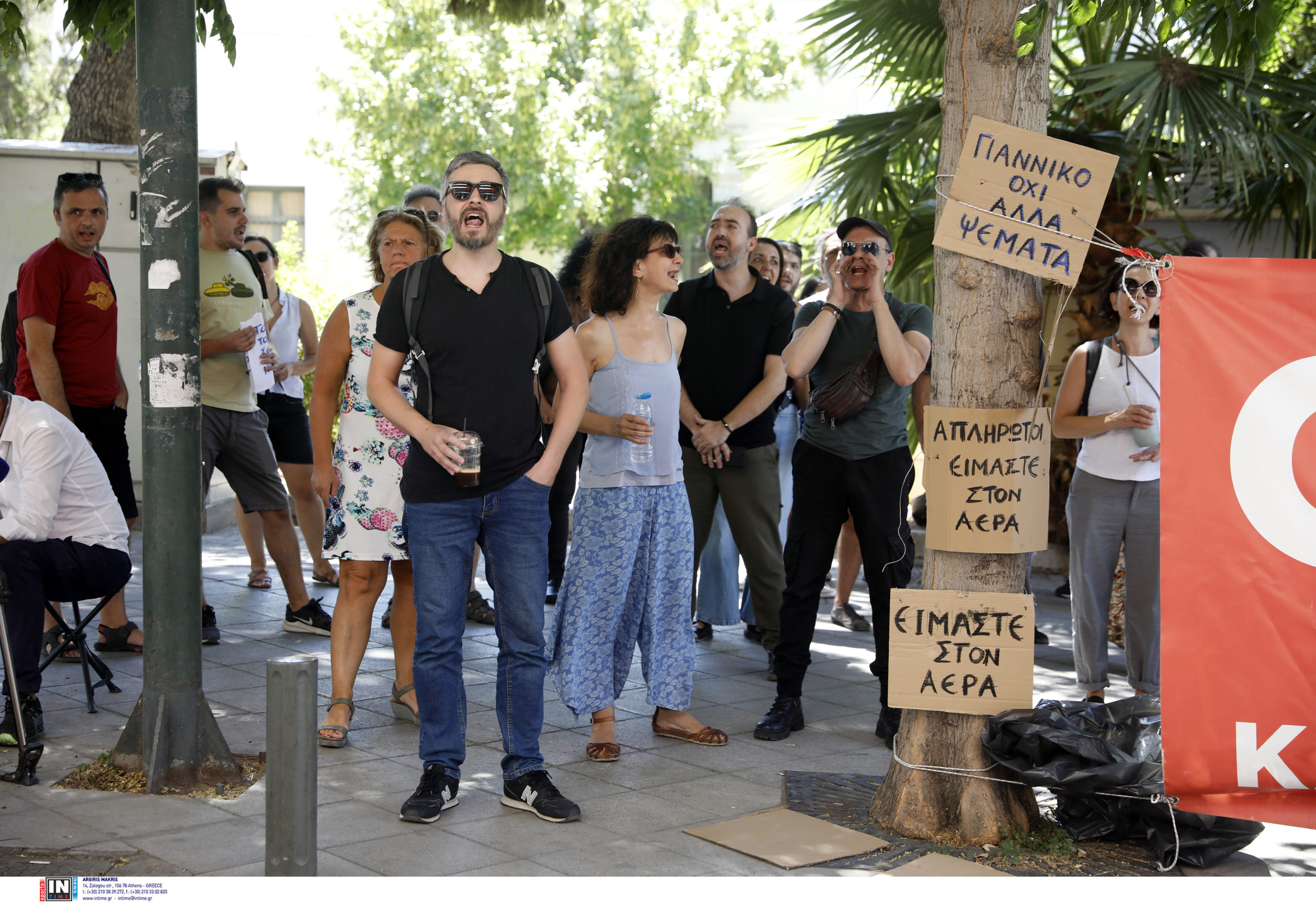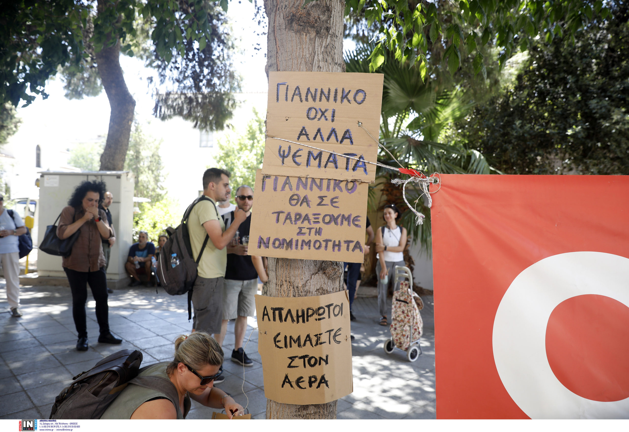 Παράλληλα, έξω από την Κουμουνδούρου συγκέντρωση διαμαρτυρίας πραγματοποιούν οι εργαζόμενοι της εφημερίδας «Αυγή», οι οποίοι εκφράζουν την αντίθεσή τους για την απόφαση του κόμματος να αναστείλει την έκδοση του καθημερινού φύλλου της εφημερίδας και διεκδικούν τα δεδουλευμένα τους, καθώς και σαφείς απαντήσεις για το μέλλον του εντύπου.