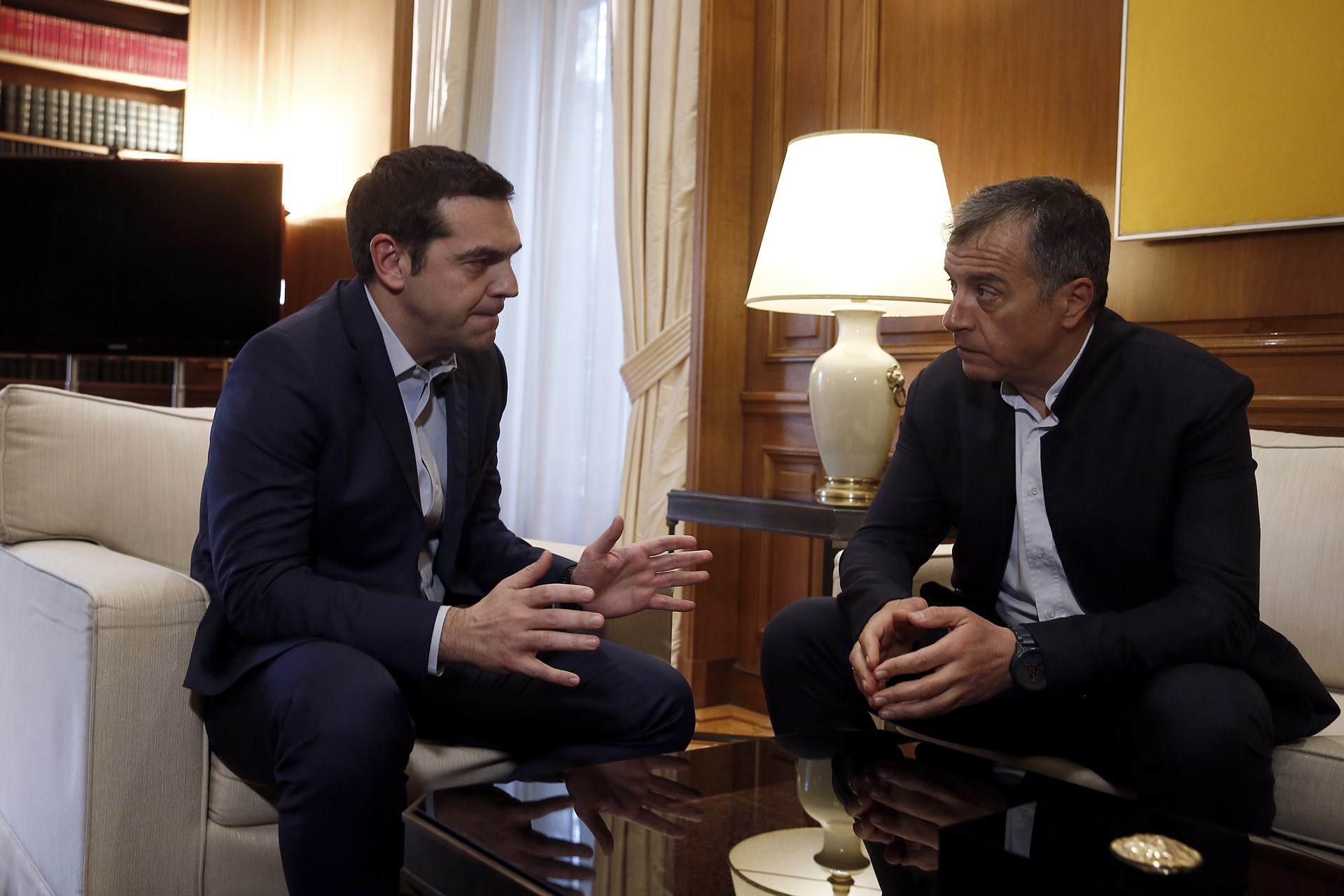 Σε εξέλιξη βρίσκεται η συνάντηση του Πρωθυπουργού Αλέξη Τσίπρα με τον επικεφαλής του Ποταμιού, Σταύρο Θεοδωράκη, στο Μέγαρο Μαξίμου.