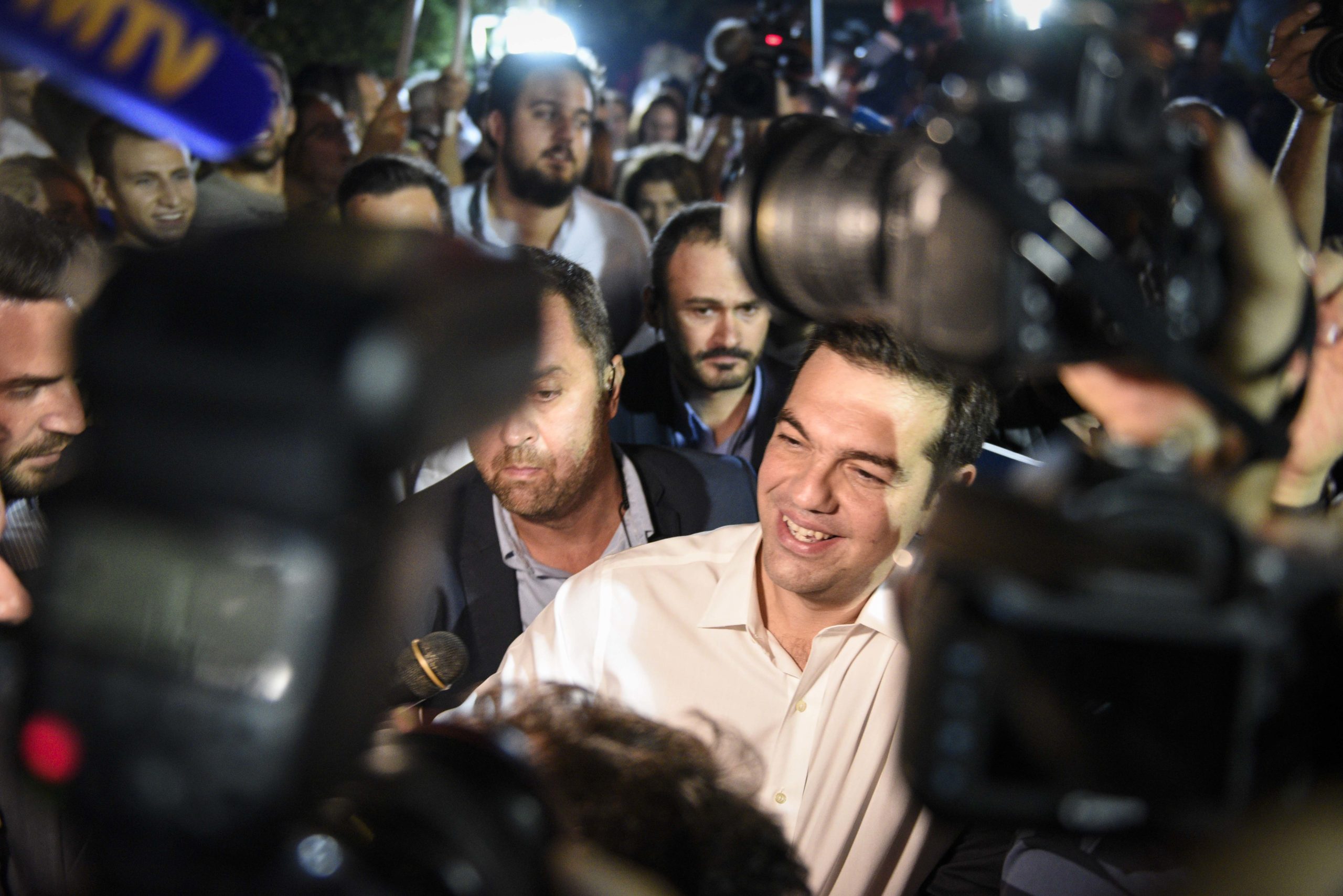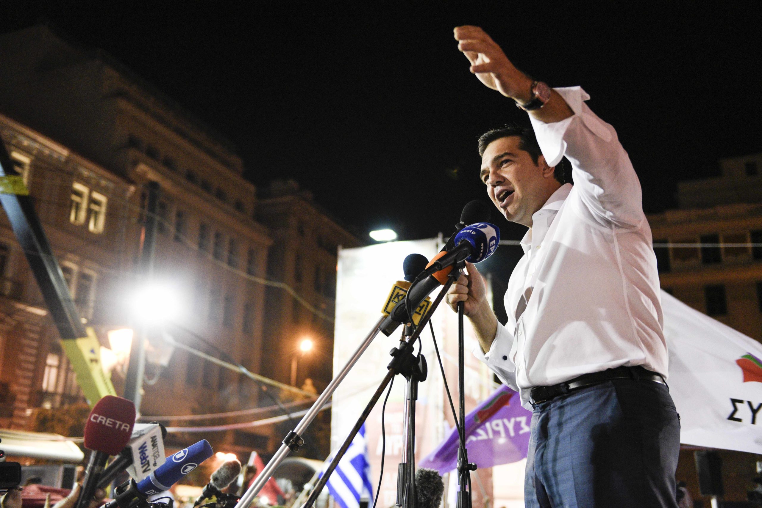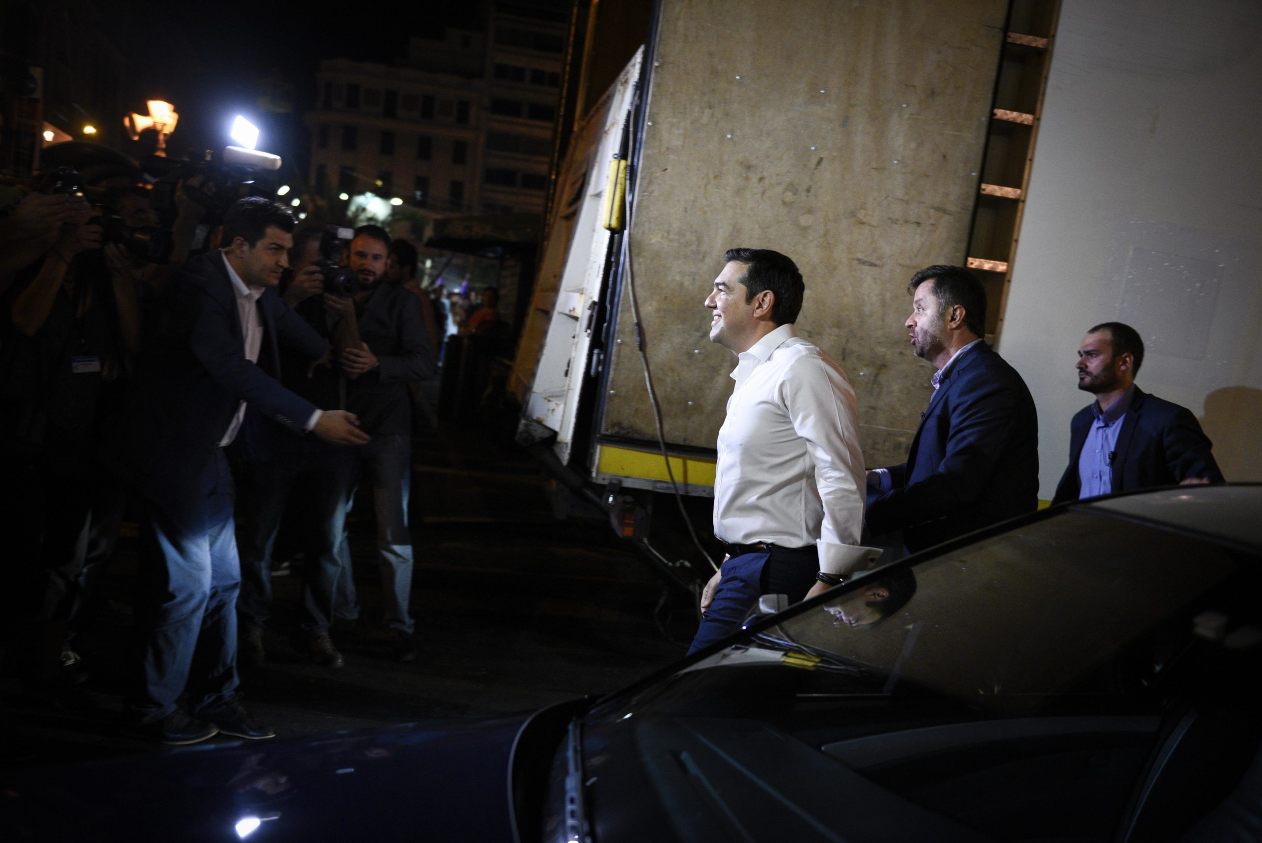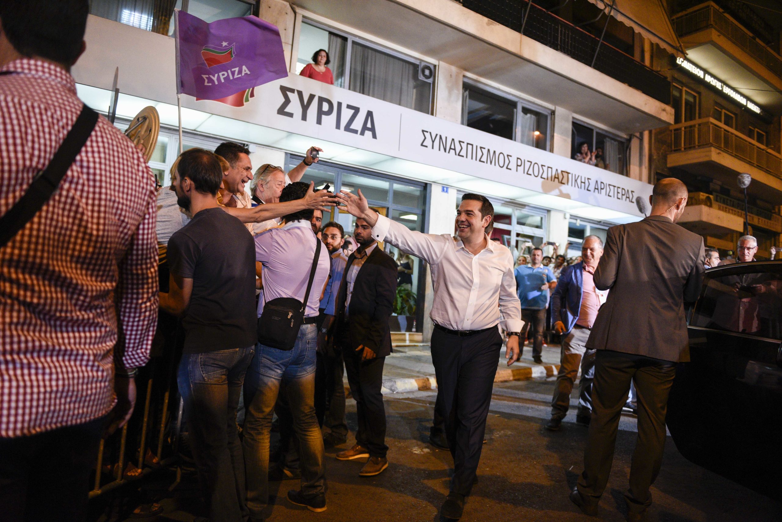 Ίδιο το σκηνικό στο προεκλογικό περίπτερο του ΣΥΡΙΖΑ στην πλατεία Κλαυθμώνος. Όταν έφτασε ο Αλέξης Τσίπρας επικράτησε πανικός. Οι πανηγυρισμοί κορυφώθηκαν όταν ο πρόεδρος του ΣΥΡΙΖΑ ανέβηκε στην εξέδρα για να κάνει δηλώσεις για τη νίκη στις εκλογές.