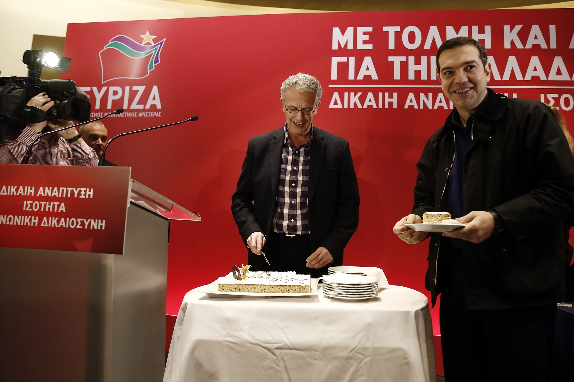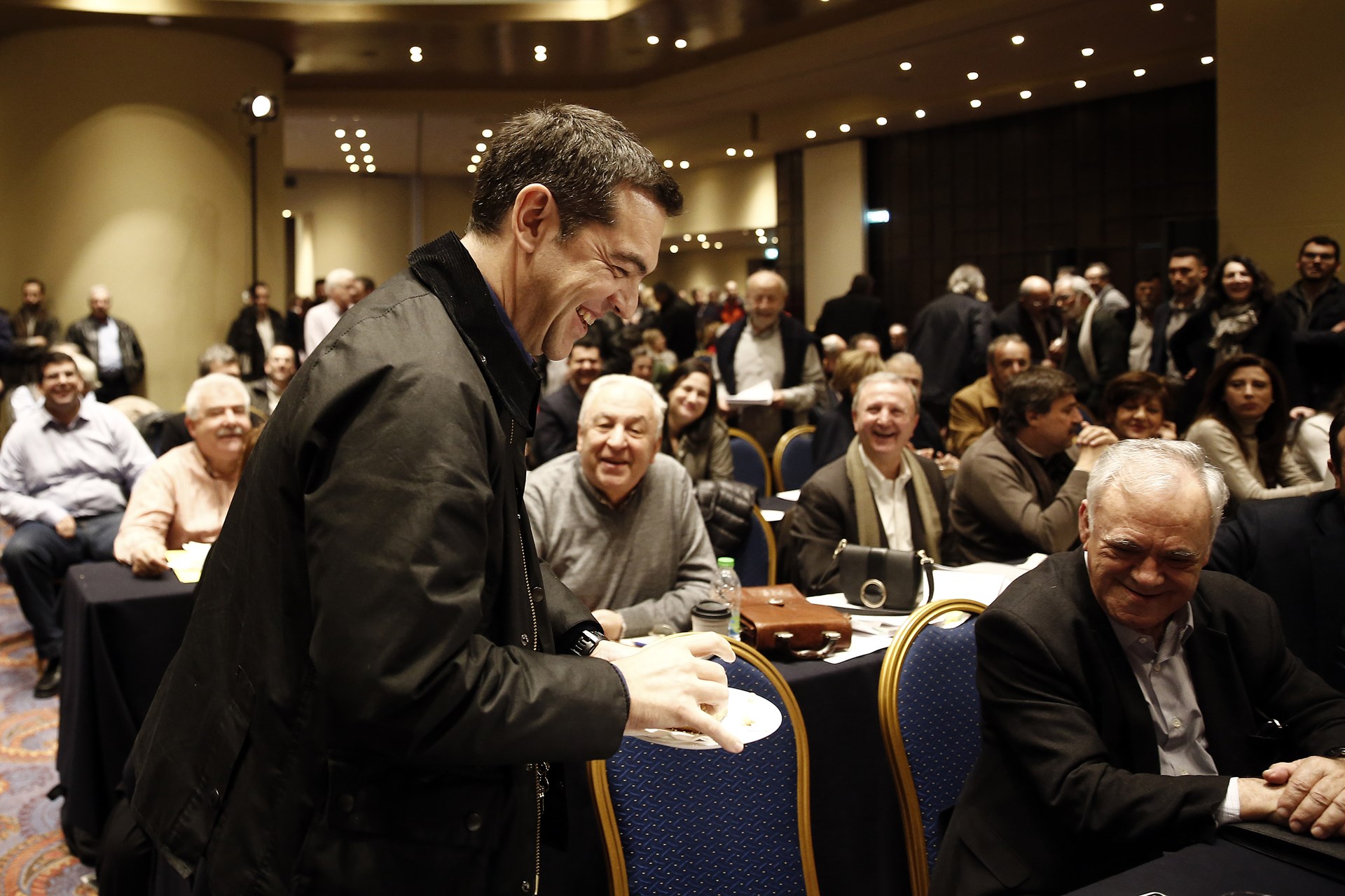 Με χαλαρό, casual ντύσιμο εμφανίστηκε ο Αλέξης Τσίπρας στην κοπή της βασιλόπιτας στη συνεδρίαση της ΚΕ του ΣΥΡΙΖΑ που έγινε σε κεντρικό ξενοδοχείο της Αθήνας.