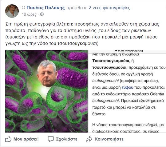 Ο κ. Πολάκης τον χαρακτηρίζει «προσφάτως ανακαλυφθέν στη χώρα μας παράσιτο ,παθογόνο για το σύστημα υγείας», έχοντας μάλιστα φτιάξει και κολάζ με φωτογραφία του Μιχάλη Γιαννάκου.