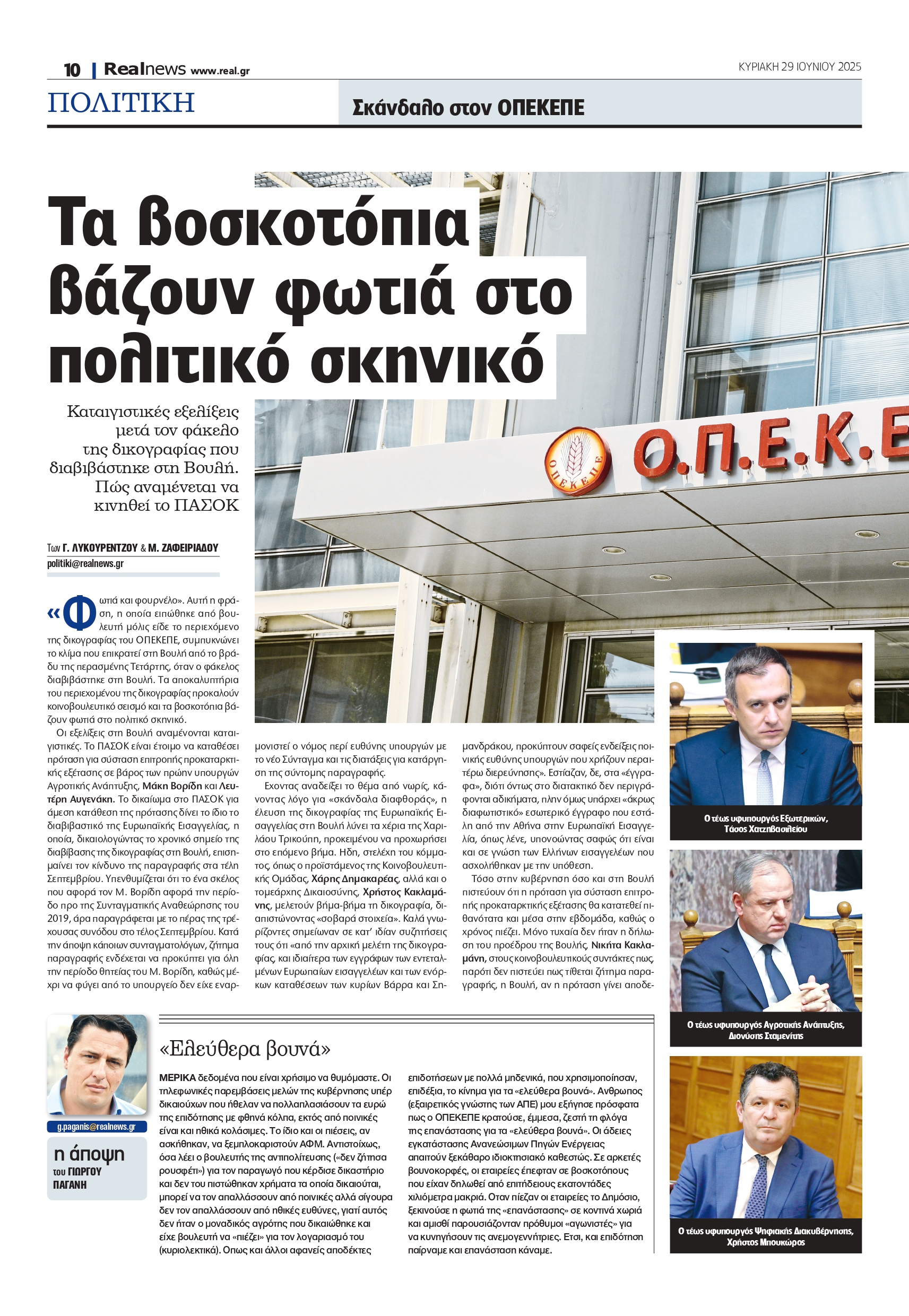«Κατά την προκαταρκτική εξέταση των φακέλων 1.000035/2023 και 1.000687/2024, των οποίων η αποδεικτική αξιοποίηση στην υπόθεση 1.001299/2025 εγκρίθηκε με τις αποφάσεις 848/2025 και 1662/2025 του Δικαστικού Συμβουλίου του Πρωτοδικείου Αθηνών, τόσο ο Γρηγόριος Βάρρας όσο και ο Ευάγγελος Σημανδράκος (πρώην πρόεδροι του ΟΠΕΚΕΠΕ) αναφέρθηκαν -μεταξύ άλλων- σε μέλη της ελληνικής κυβέρνησης, δηλαδή στους πρώην υπουργούς Αγροτικής Ανάπτυξης και Τροφίμων, Μ. Βορίδη και Λ. Αυγενάκη, υπονοώντας ότι, κατά την άσκηση των υπουργικών τους καθηκόντων, υποστήριξαν μέλη του Δ.Σ. του ΟΠΕΚΕΠΕ τα οποία ενήργησαν κατά παράβαση των κανόνων ορθής διαχείρισης των κοινοτικών πόρων».