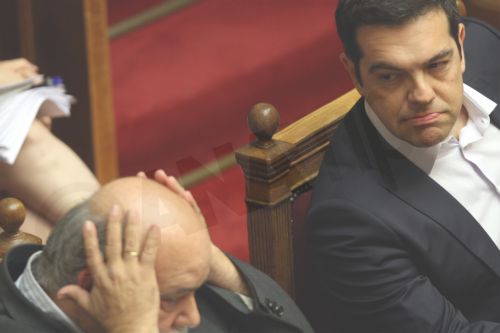 Ο φακός συνέλαβε τον Πρωθυπουργό Αλέξη Τσίπρα με ένα αινιγματικό ύφος να παρακολουθεί στη Βουλή τη διαδικασία για την έγκριση του δημοψηφίσματος.