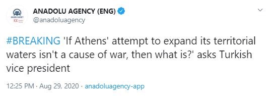 Σύμφωνα με το Anadolu, ο Οκτάι σχολιάζοντας την ένταση που επικρατεί στην Ανατολική Μεσόγειο και αντιδρώντας στην πρόσφατη απόφαση του Πρωθυπουργού Κυριάκου Μητσοτάκη για άμεση επέκταση της αιγιαλίτιδας ζώνης στο Ιόνιο από τα 6 στα 12 ναυτικά μίλια δήλωσε: “Αν η Αθήνα επιχειρήσει να επεκτείνει τα χωρικά της δεν είναι αιτία πολέμου; Αν αυτό δεν είναι λόγος πολέμου, τότε τι είναι;”.