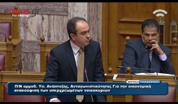 Ένταση επικράτησε στη βουλή μεταξύ του υφυπουργού Ανάπτυξης Αθανάσιο Σκορδά και βουλευτών του ΣΥΡΙΖΑ, στο πλαίσιο της συζήτησης της πρότασης νόμου για την «οικονομική ανακούφιση των υπερχρεωμένων νοικοκυριών».Όλα ξεκίνησαν όταν ο βουλευτής του ΣΥΡΙΖΑ Παναγιώτης Κουρουμπλής κατηγόρησε την κυβέρνηση για το γεγονός ότι δεν έρχεται ο πρωθυπουργός να απαντήσει στις ερωτήσεις των αρχηγών κομμάτων, αλλά και για το ότι οι υπουργοί στέλνουν τους υφυπουργούς για να απαντήσουν. Ο κ. Κουρουμπλής έκανε μάλιστα λόγο για «θεσμική εκτροπή».Στα λεγόμενα του κ. Κουρουμπλή απάντησε ο κ. Σκορδάς, ο οποίος παίρνοντας τον λόγο τόνισε ότι είναι «αυθάδεια και αλαζονεία να εγκαλείται ο Πρωθυπουργός από «εκείνον που έλειπε για δύο μήνες διακοπές», διευκρινίζοντας ότι εννοεί τον κ. Τσίπρα.«Κόψτε την πλάκα και σοβαρευτείτε. Στοπ στο καλαμπούρι. Γίνετε επιτέλους υπεύθυνοι», είπε χαρακτηριστικά ο υφυπουργός Ανάπτυξης, προκαλώντας την οργισμένη αντίδραση των βουλευτών του ΣΥΡΙΖΑ που βρίσκονταν στην αίθουσα.