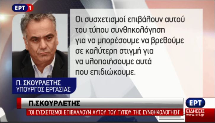 “Οι συσχετισμοί επιβάλλουν αυτού του τύπου συνθηκολόγηση για να μπορέσουμε να βρεθούμε σε καλύτερη στιγμή για να υλοποιήσουμε αυτά που επιδιώκαμε” ανέφερε ο υπουργός Εργασίας Πάνος Σκουρλέτης κατά τη συνεδρίαση της Κοινοβουλευτικής Ομάδας και της Πολιτικής Γραμματείας του ΣΥΡΙΖΑ στη Βουλή.
