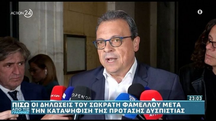 Ο πρόεδρος της ΚΟ του ΣΥΡΙΖΑ Σωκράτης Φάμελλος σχολίασε το αποτέλεσμα της διαδικασίας της πρότασης δυσπιστίας, λέγοντας μεταξύ άλλων, ότι ο κ. Μητσοτάκης δεν απάντησε σε όλα τα ερωτήματα για την παραποίηση των ηχητικών ντοκουμέντο, αλλά ούτε και στην πρόταση του ΣΥΡΙΖΑ να παραπεμφθεί ο κ. Καραμανλής στη Δικαιοσύνη.