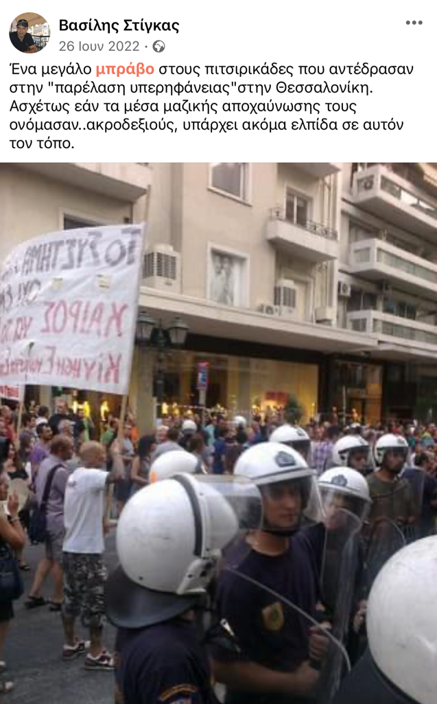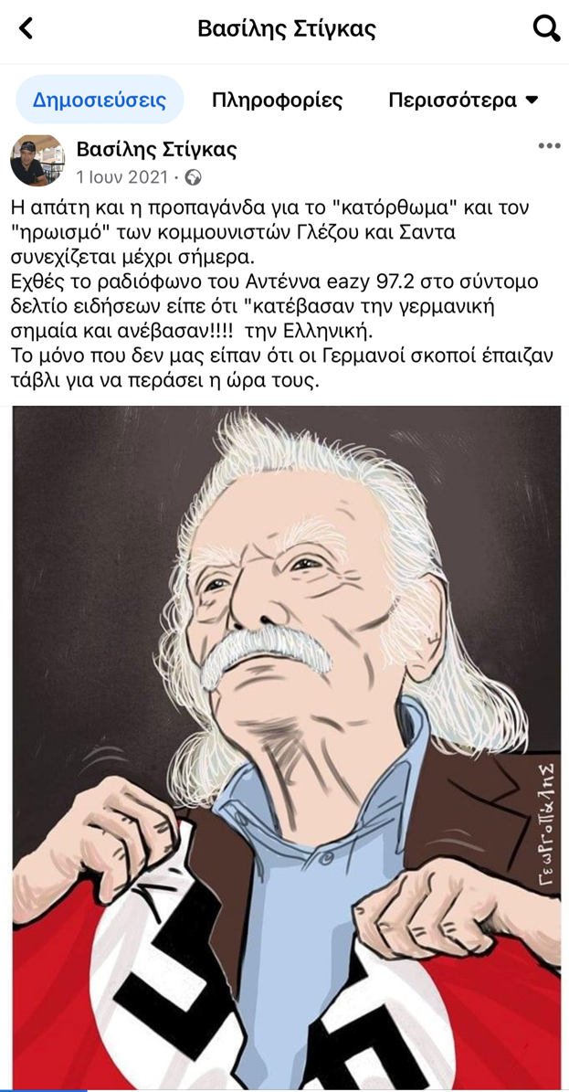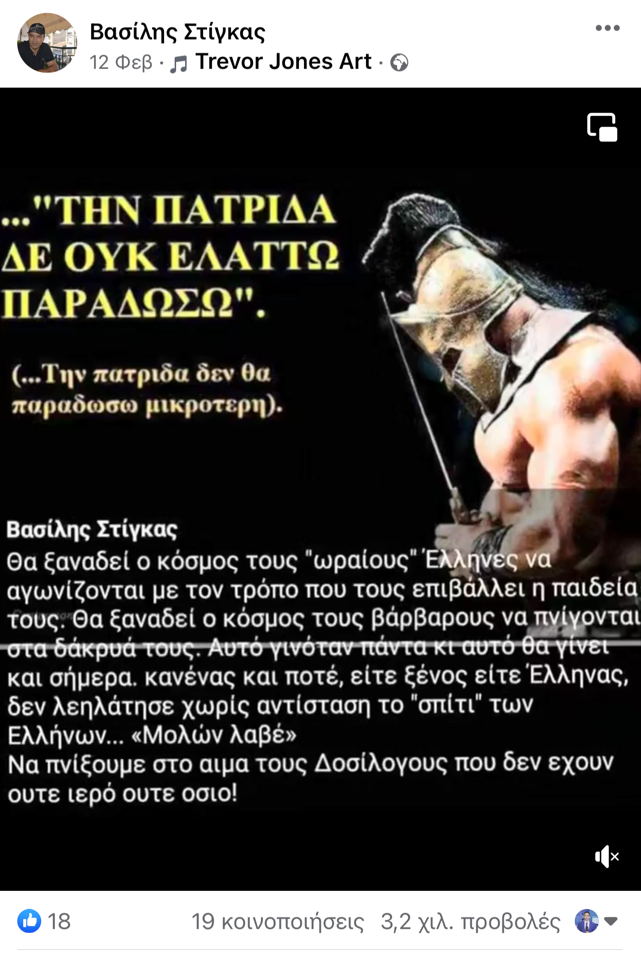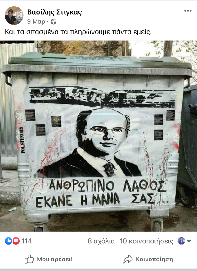 Ο Βασίλης Στίγκας έφτασε να κάνει χυδαία ανάρτηση ακόμη και στον δολοφονημένο από τα τάγματα εφόδου, Παύλο Φύσσα, αλλά και την μητέρα του, Μάγδα.