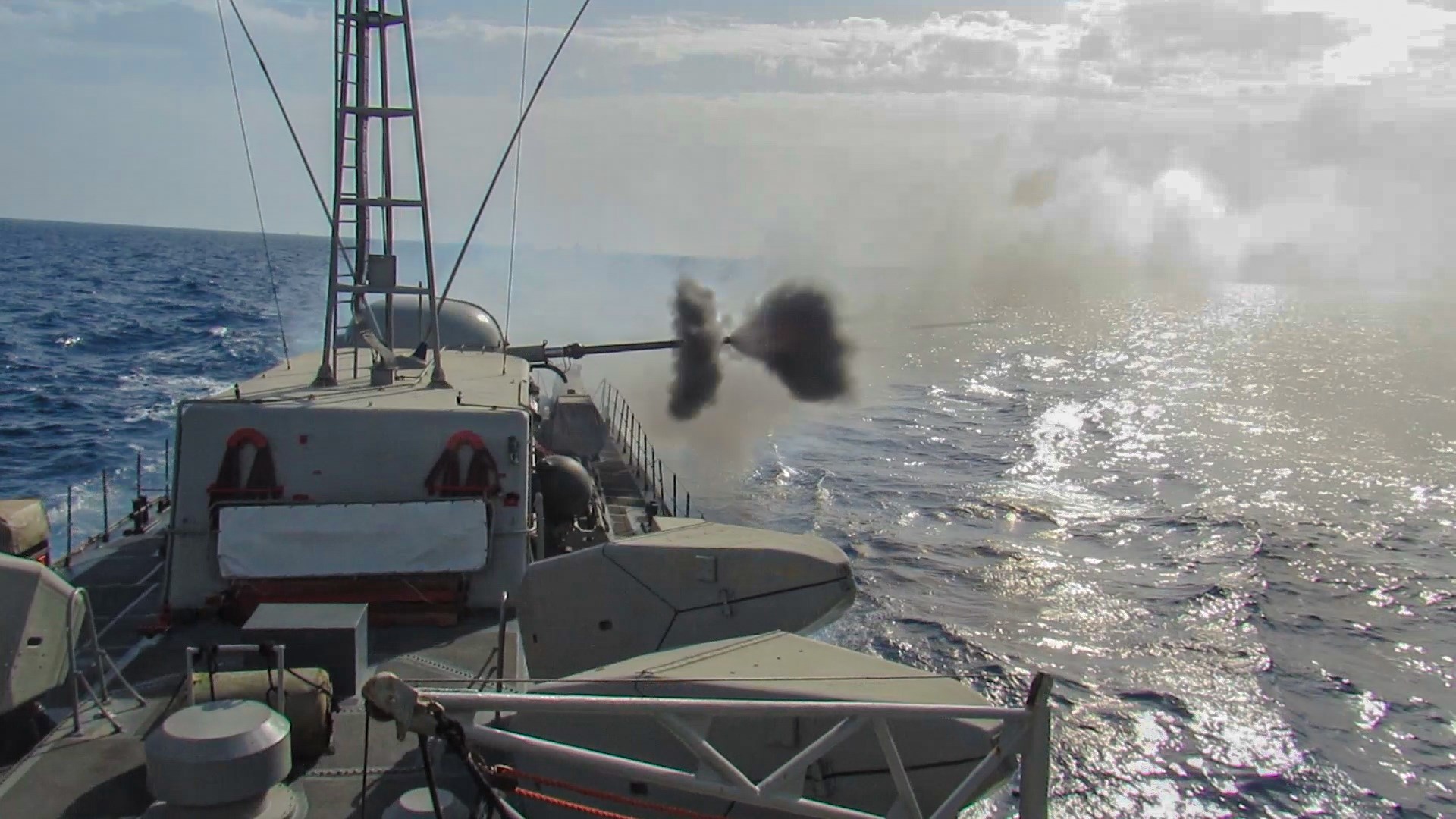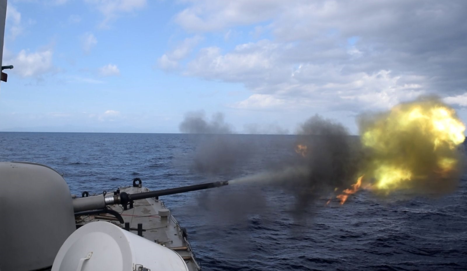 Στις εικόνες που έδωσε στην δημοσιότητα το Γενικό Επιτελείου Ναυτικού, οι κάννες έσταξαν φωτιά από τις συνεχείς ρίψεις πυρών κατά την διάρκεια εκτέλεσης διάφορων σεναρίων.