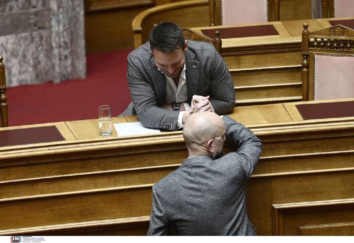 Από την αίθουσα της Ολομέλειας της Βουλής παρακολουθεί τη συζήτηση για την ισότητα στο γάμο ομόφυλων, ο Στέφανος Κασσελάκης.