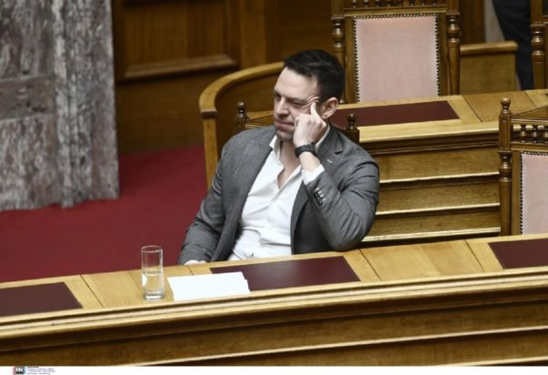 Από την αίθουσα της Ολομέλειας της Βουλής παρακολουθεί τη συζήτηση για την ισότητα στο γάμο ομόφυλων, ο Στέφανος Κασσελάκης.