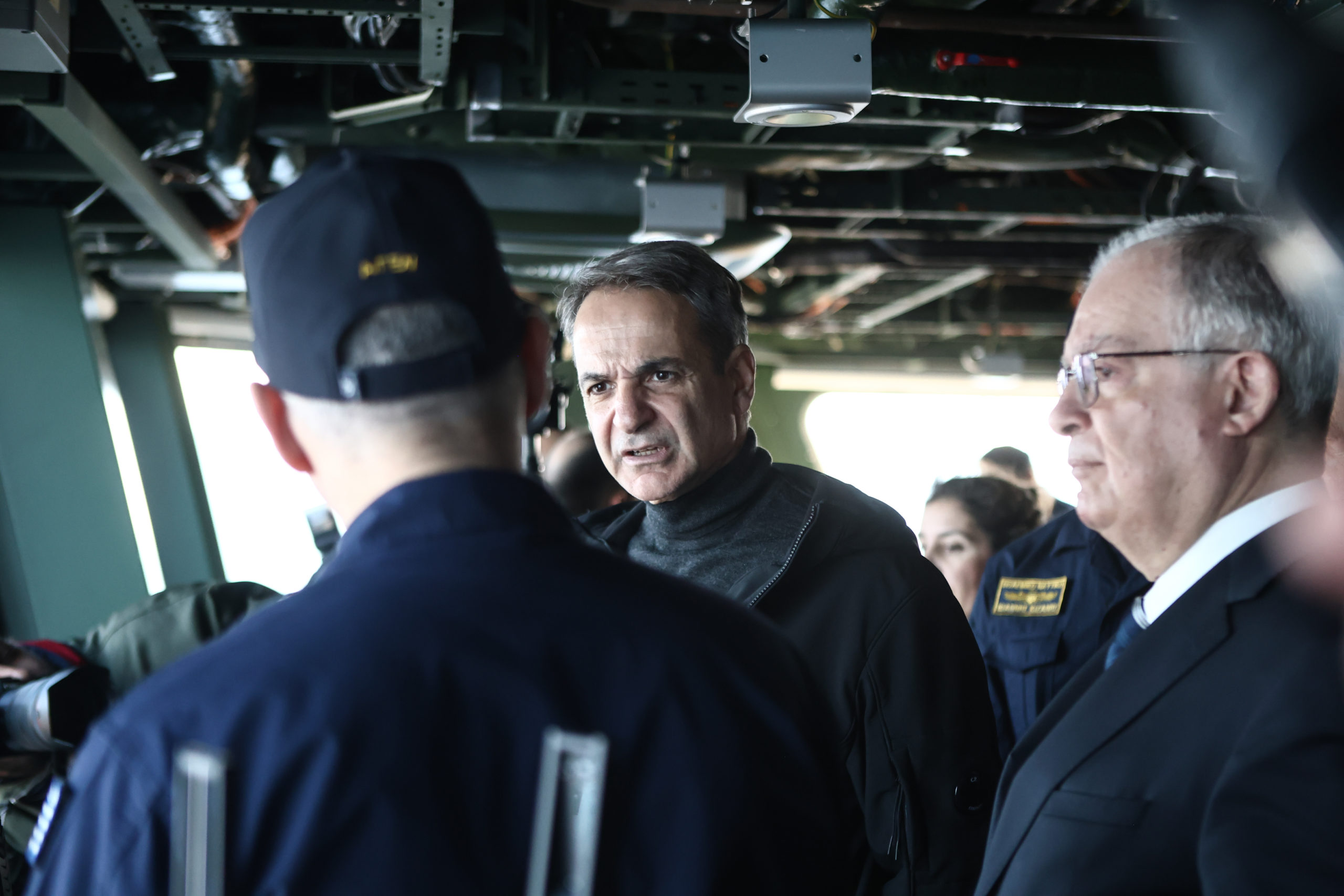 Οι κ.κ. Τασούλας, Μητσοτάκης και Δένδιας έφτασαν στη φρεγάτα με ελικόπτερο. Αποβιβαζόμενοι στο κατάστρωμα, είχαν την ευκαιρία να συνομιλήσουν με το πλήρωμα και να ενημερωθούν για τις δυνατότητες του πλοίου.