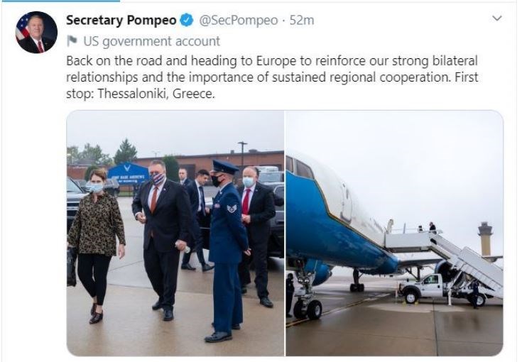 Στη Θεσσαλονίκη έφτασε την Κυριακή λίγο μετά τα μεσάνυχτα ο Μάικ Πομπέο. Σε μια επίσκεψη στην Ελλάδα με πολλαπλά μηνύματα και συμβολισμούς, την οποία η χώρα μας θεωρεί βαρύνουσας σημασίας εν μέσω των τουρκικών προκλήσεων και λίγο πριν αρχίσουν οι διερευνητικές επαφές με την Άγκυρα. Ερμηνεύεται δε, ως σαφής στήριξη των θέσεων της χώρας μας δεδομένου ότι δεν θα ακολουθήσει ανάλογη επίσκεψη στην Τουρκία, όπως συνέβαινε πάντα στο πλαίσιο της τήρησης μιας πολιτικής ίσων αποστάσεων από τις ΗΠΑ.