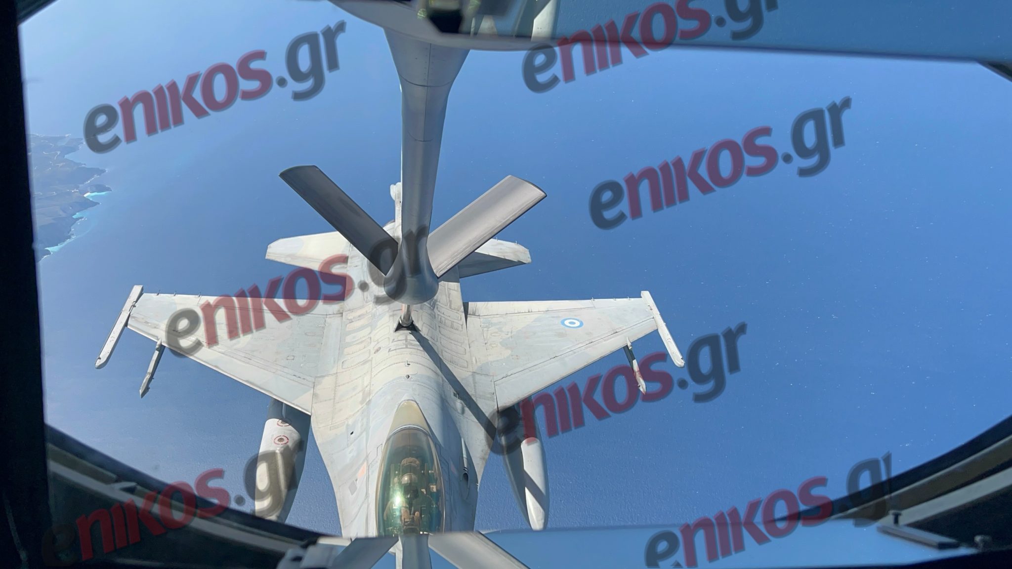 Το enikos.gr βρέθηκε στην 112 Πτέρυγα Μάχης, στην Ελευσίνα, απ’ όπου απογειώθηκε με το γκρι αεροπλάνο της Πολεμικής Αεροπορίας των ΗΠΑ. Σε μία πτήση που διήρκησε 4 γεμάτες ώρες βρεθήκαμε πάνω από Αιγαίο και Ιόνιο. Συνολικά, το ιπτάμενο τάνκερ προσέγγισαν 3 τετράδες μαχητικών, από τις ΗΠΑ, την Πολωνία και την 341 Μοίρα της Ελλάδας.