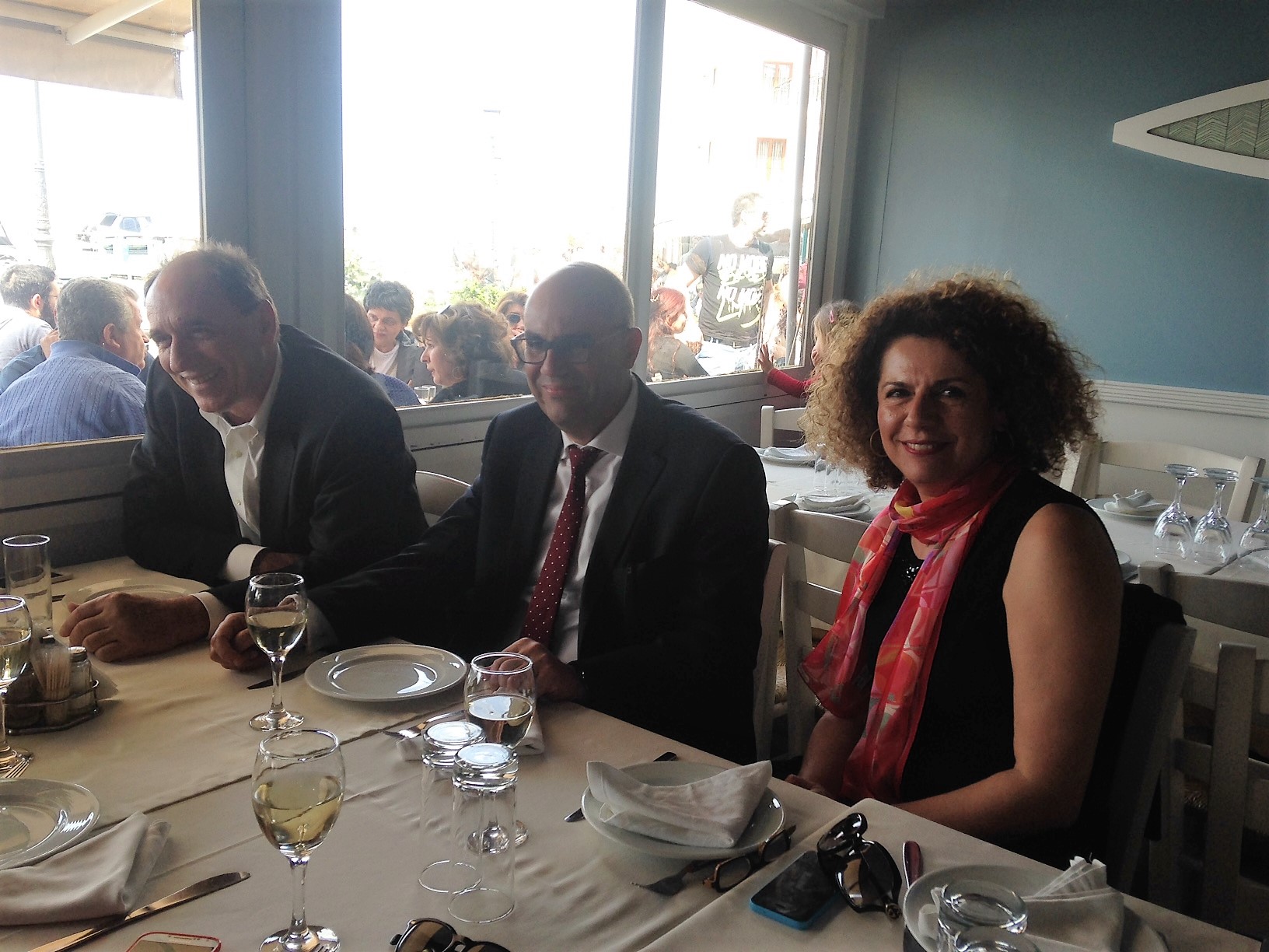 Οι κ.κ. Σταθάκης και Βάμβουκας, συνοδευόμενοι από τις συζύγους τους, απόλαυσαν εκτός από τον μπακαλιάρο, θαλασσινά, χόρτα και σαλάτες.