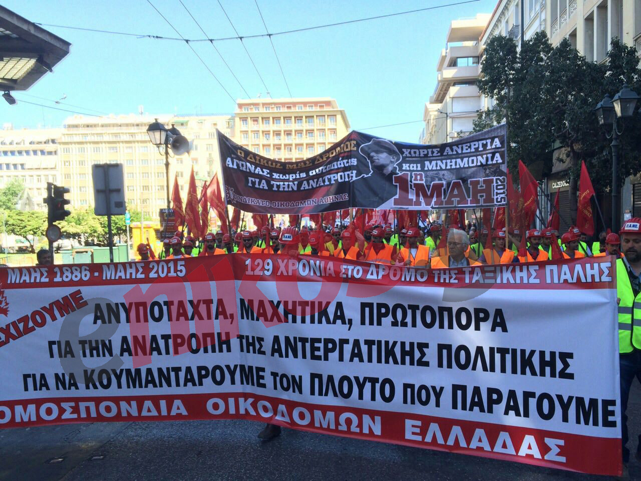 Το παρών στην πορεία της Πρωτομαγιάς δίνει ο Δημήτρης Κουτσούμπας. Ο γενικός γραμματέας του ΚΚΕ συνομίλησε με τους συγκεντρωμένους ενώ ελάχιστα μέτρα πιο μακριά ξεκίνησε την πορεία του το μπλοκ των οικοδόμων.