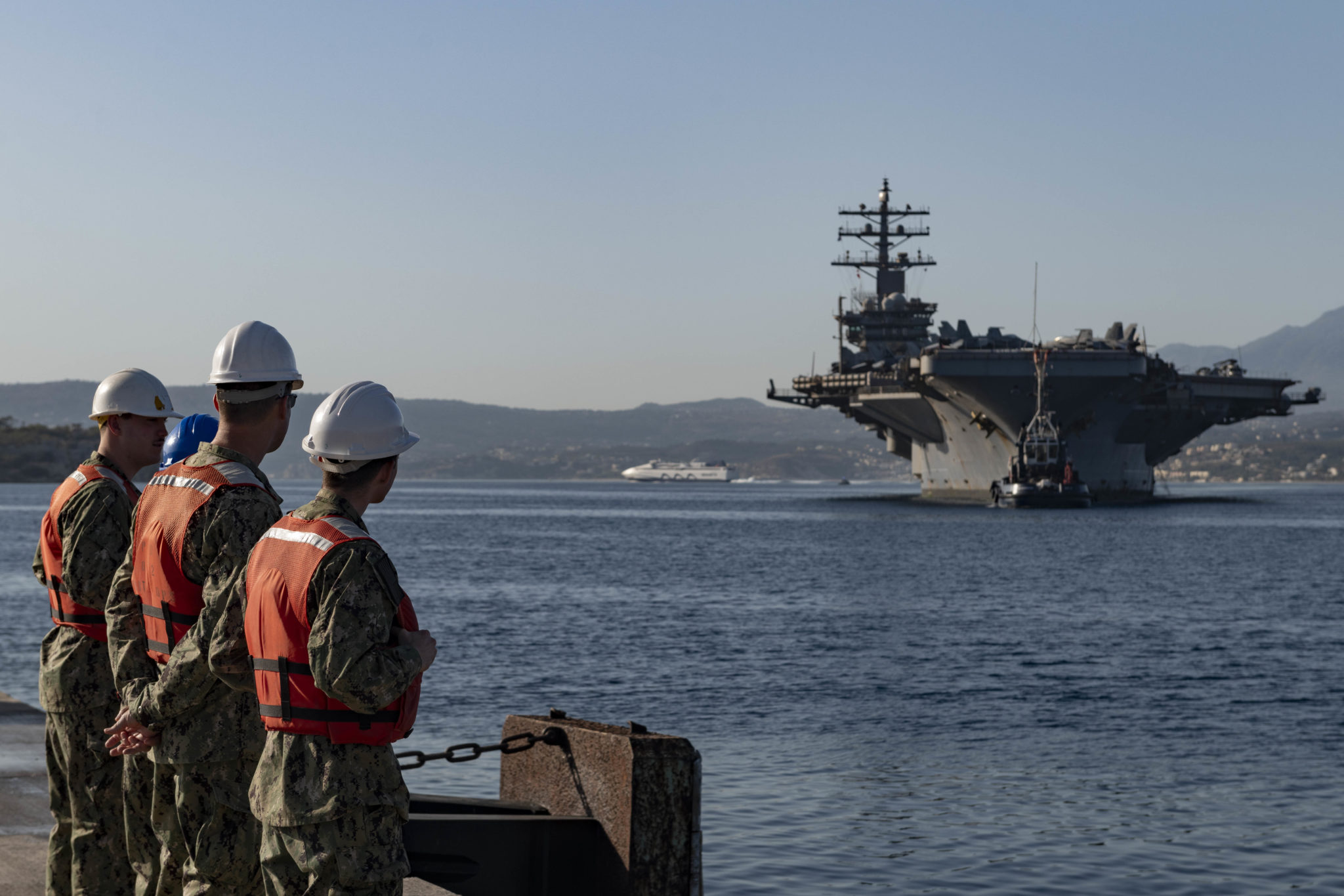 Ήταν στις 28 Απριλίου, όταν τον πυρηνοκίνητο αεροπλανοφόρο είχε καταπλεύσει πάλι στην Σούδα πριν επιστρέψει στην Μέση Ανατολή στις 2 Μαΐου, προκειμένου να αντιμετωπίσουν τις εντεινόμενες απειλές από τους Χούθι της Υεμένης, που έχουν διαταράξει το διεθνές εμπόριο με τις συνεχείς επιθέσεις εναντίον εμπορικών πλοίων στην Ερυθρά Θάλασσα.