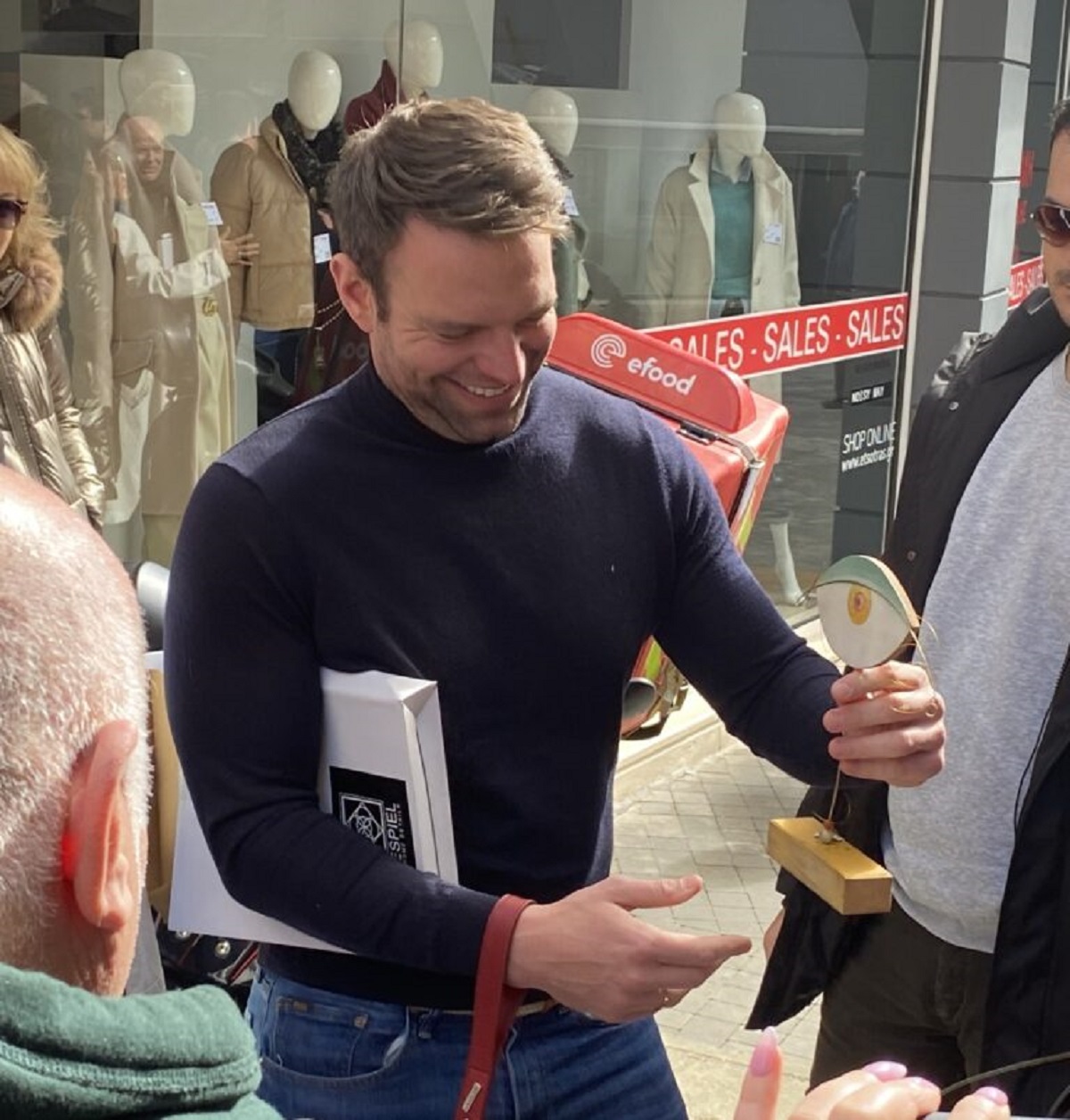 Είχε την ευκαιρία να συνομιλήσει με θαμώνες καταστημάτων στον πεζόδρομο της Ερμού.