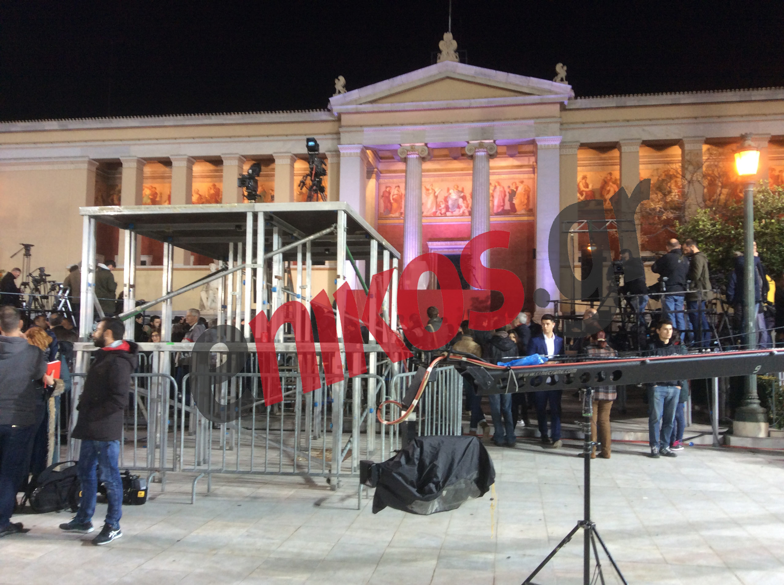 Αυτή την ώρα στήνεται εξέδρα στα Προπύλαια καθώς αναμένεται η δήλωση του προέδρου του ΣΥΡΙΖΑ, Αλέξη Τσίπρα.