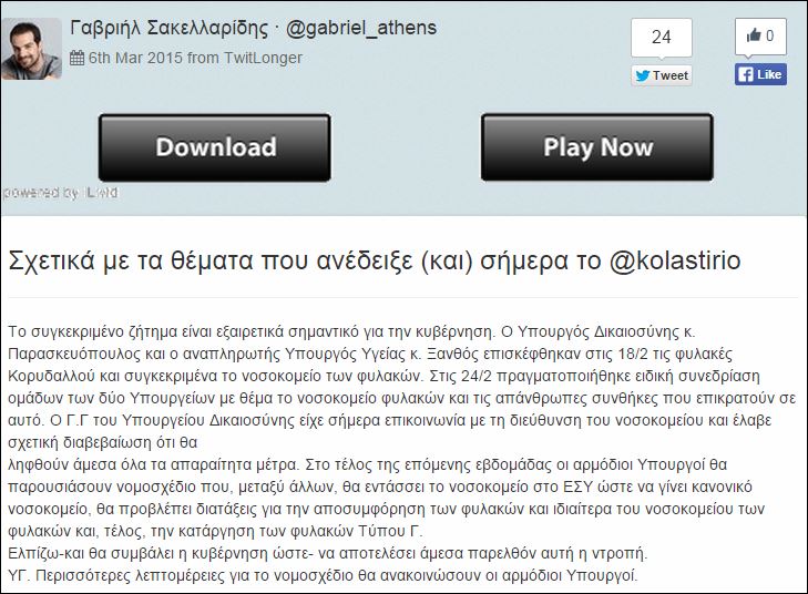 ΥΓ. Περισσότερες λεπτομέρειες για το νομοσχέδιο θα ανακοινώσουν οι αρμόδιοι Υπουργοί», έγραψε στο twitter ο Κυβερνητικός Εκπρόσωπος.