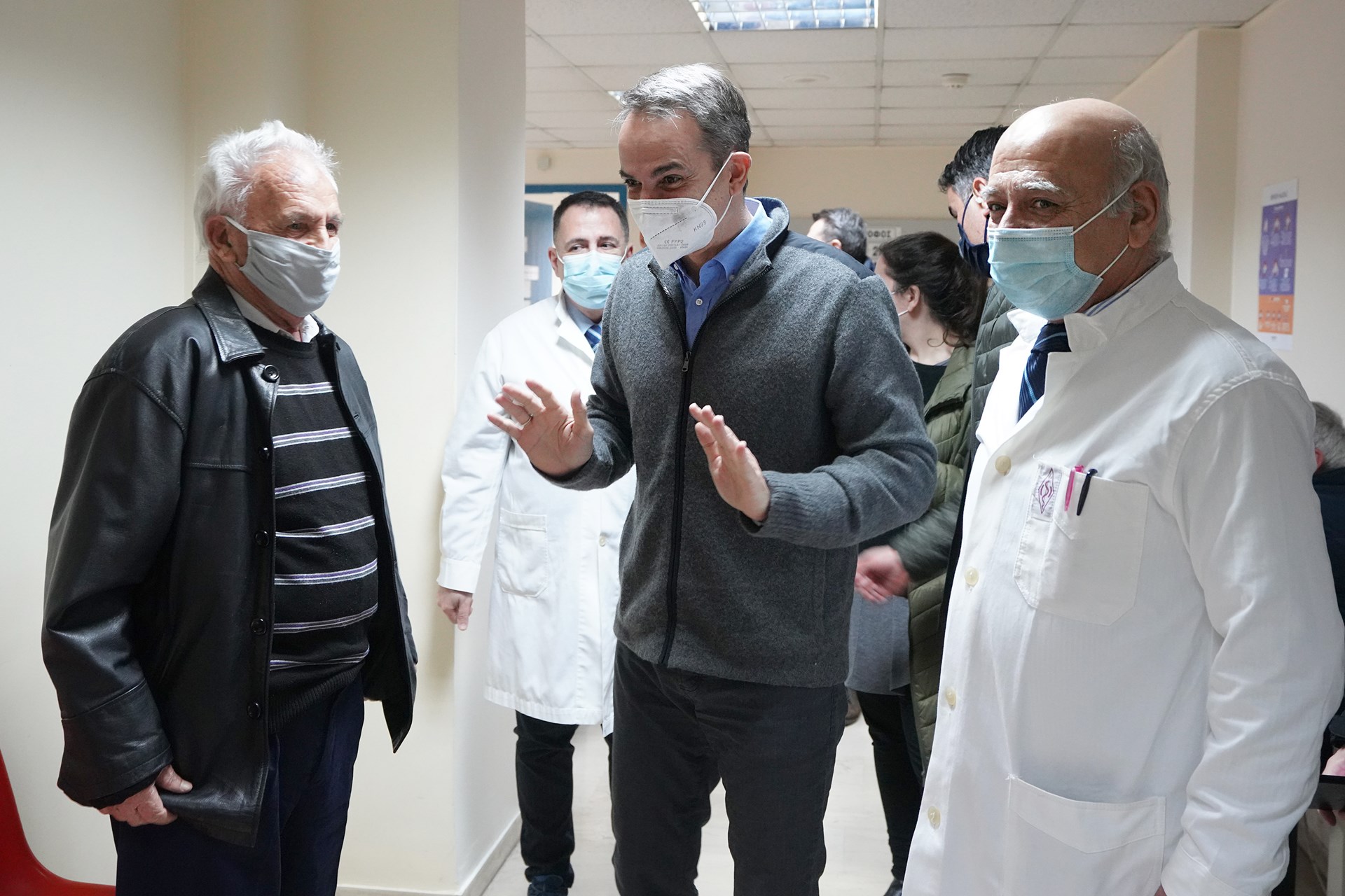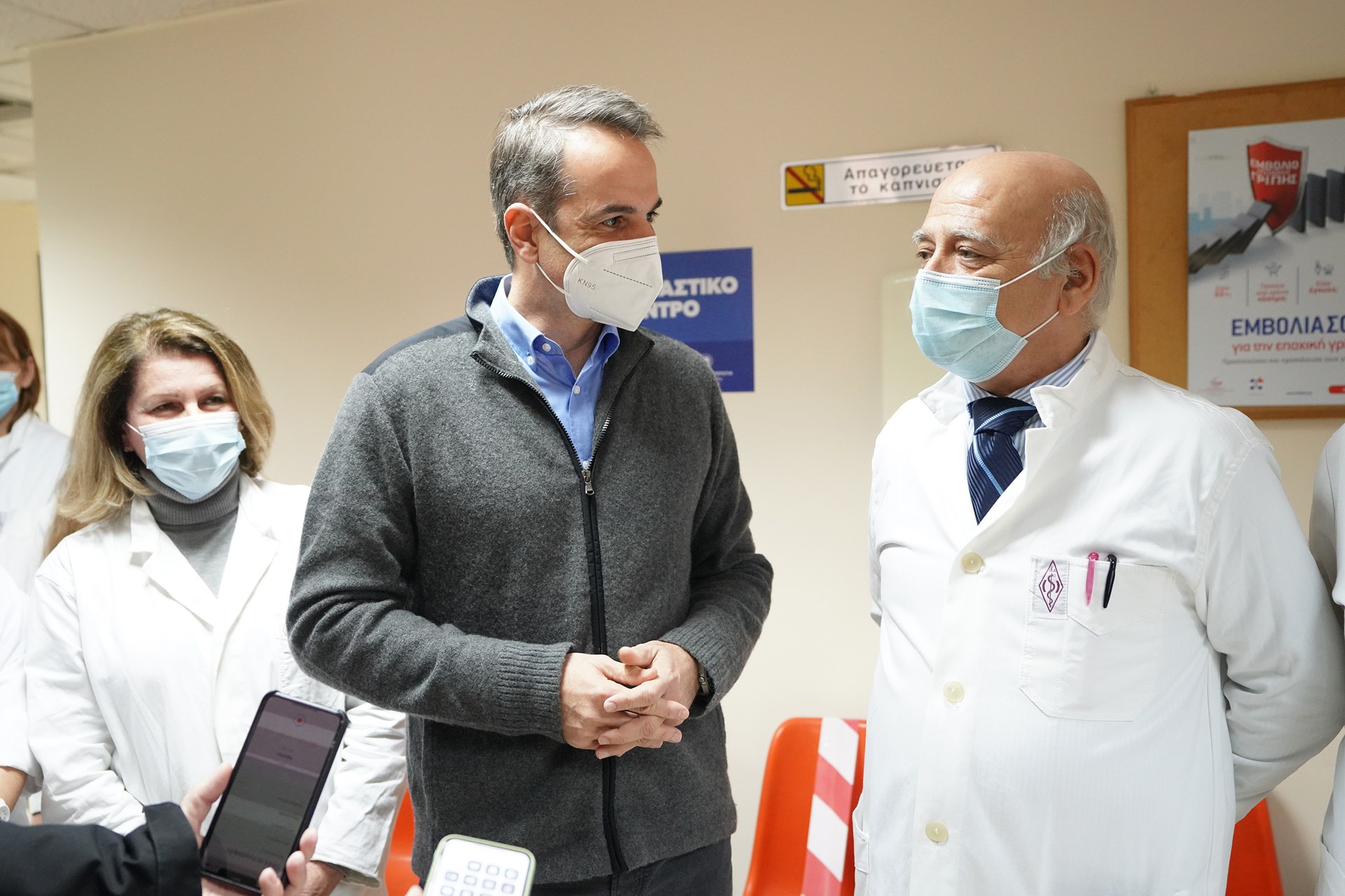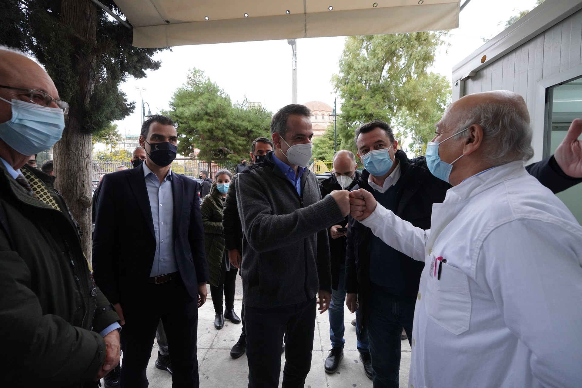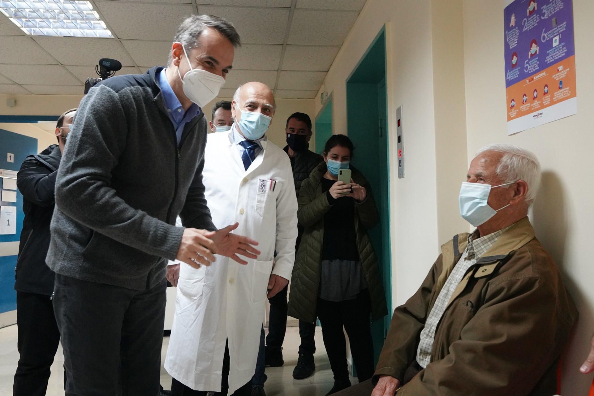 Στο πλαίσιο της επίσκεψής του, ο πρωθυπουργός συνομίλησε με ηλικιωμένους άνω των 85 ετών, οι οποίοι βρίσκονταν στο Κέντρο έχοντας προγραμματίσει τον εμβολιασμό τους, και με συνοδούς τους, ενώ ενημερώθηκε από το προσωπικό για την πορεία υλοποίησης του σχεδίου. Ο Κυριάκος Μητσοτάκης επισήμανε ότι η εκστρατεία εμβολιασμού προχωρά κανονικά, βάσει του προσεκτικού προγραμματισμού που έχει γίνει και σύμφωνα με τις προτεραιότητες που έθεσε η Εθνική Επιτροπή Εμβολιασμών. Τόνισε ότι έως σήμερα έχουν εμβολιαστεί περισσότεροι από 140.000 πολίτες, ενώ χθες Παρασκευή εντάχθηκε στην πλατφόρμα προγραμματισμού ραντεβού η αμέσως επόμενη ηλικιακή ομάδα.
