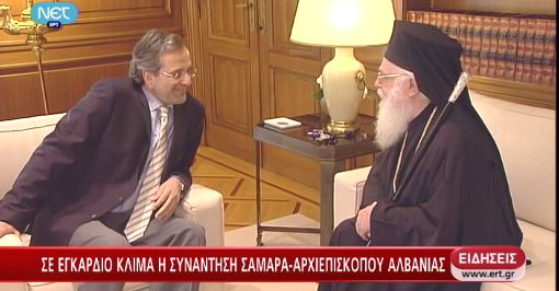 Τον Αρχιεπίσκοπο Αλβανίας Αναστάσιο δέχθηκε πριν από λίγο στο Μέγαρο Μαξίμου ο Αντώνης Σαμαράς. Η συνάντηση έγινε σε εγκάρδιο κλίμα με τον κ. Αναστάσιο να εύχεται στον πρωθυπουργό να έχει τις απαραίτητες δυνάμεις για να φέρει σε πέρας το δύσκολο έργο που έχει αναλάβει.