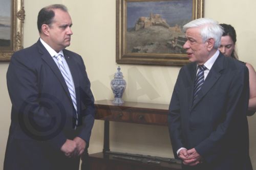 Κλείνοντας, ο κ. Λαριγκάκης προσέφερε στον κ. Παυλόπουλο ένα «μικρό» όπως το χαρακτήρισε, αναμνηστικό με το σύμβολο του United States House of Representatives.