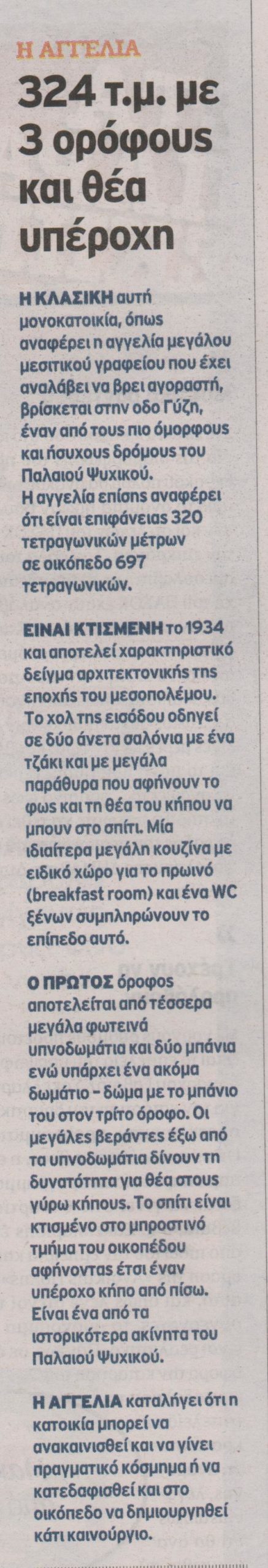 «Πωλητήριο» για 1,8 εκατ. ευρώ έχει μπει στην ιστορική βίλα 320 τ.μ., στην οδό Γύζη, στο Παλαιό Ψυχικό, όπου έζησαν ο Γεώργιος Παπανδρέου και η Σοφία Μινέικο έως το 1967.