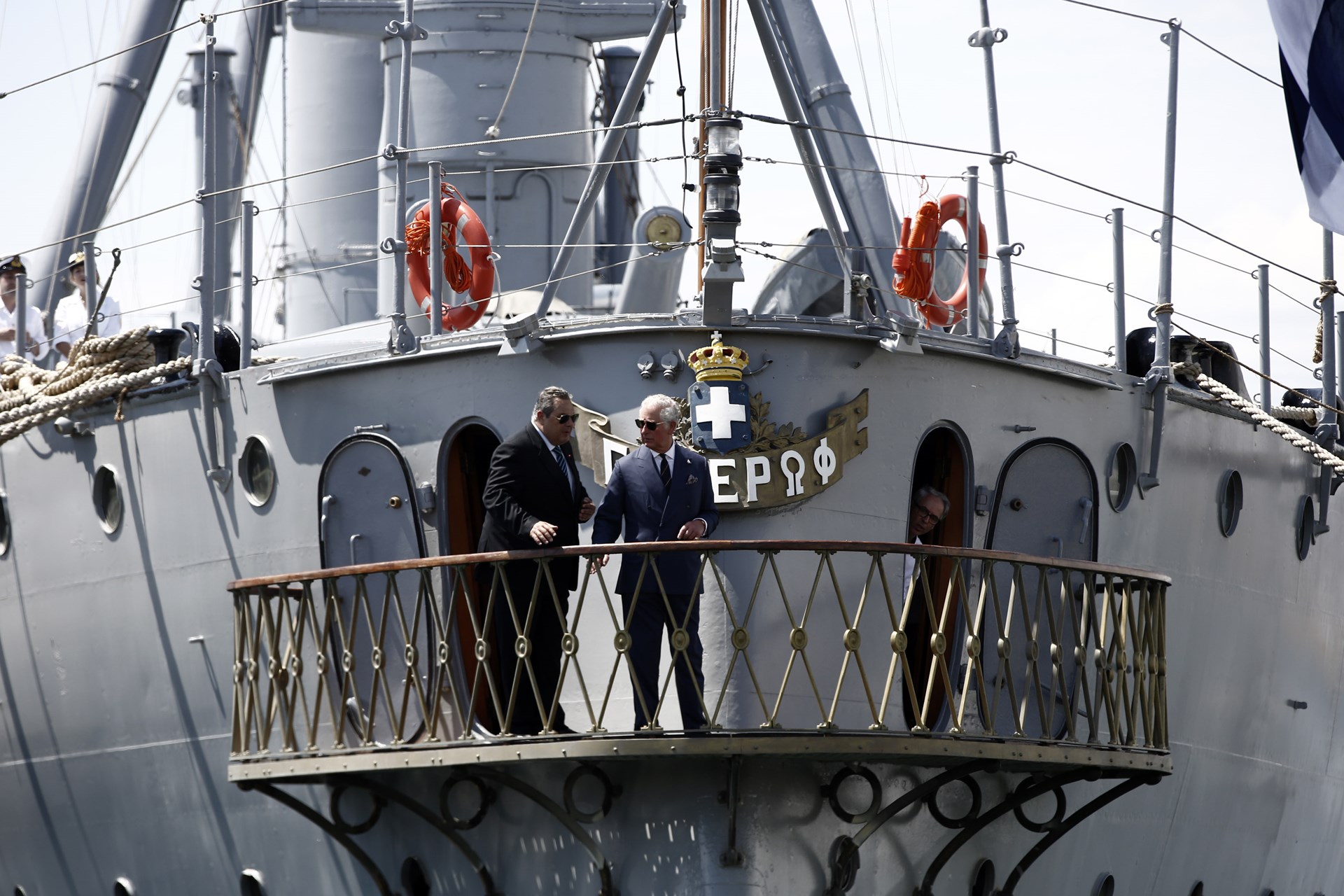 Ο πρίγκιπας Κάρολος συνοδευόμενος από τον υπουργό Εθνικής Άμυνας Πάνο Καμμένο και τον αρχηγό ΓΕΕΘΑ, επισκέφθηκε το θωρηκτό- καταδρομικό “Γ. Αβέρωφ“, στο Φλοίσβο του Παλαιού Φαλήρου.