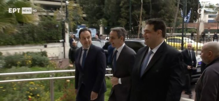 Τον Κυριάκο Μητσοτάκη υποδέχτηκαν στην είσοδο του υπουργείου ο κ. Θοδωρής Λιβάνιος και ο κ. Δημήτρης Παπαστεργίου.