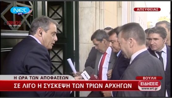 Ο Γιάννης Στουρνάρας, έφτασε στη Βουλή, μαζί με τον Αντώνη Σαμαρά, με το πρωθυπουργικό αυτοκίνητο.