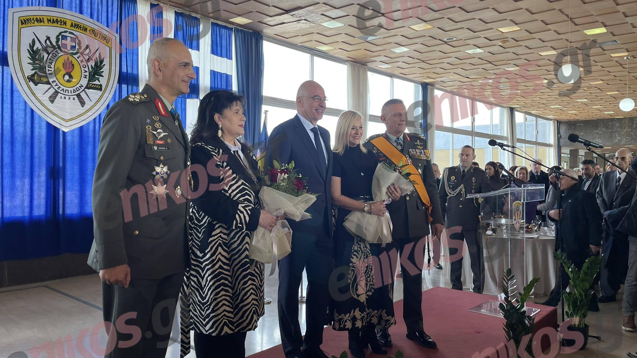 Με έναν εγκάρδιο εναγκαλισμό προς τον Κωνσταντίνο Φλώρο ο υπουργός Εθνικής Άμυνας, Νίκος Δένδιας, ευχαρίστησε τον επίτιμο πλέον Αρχηγό ΓΕΕΘΑ για την τετραετή προσφορά του στην πατρίδα, ευχόμενος τα καλύτερα για τον ίδιο και την οικογένειά του, την οποία γνωρίζει όπως τόνισε προσωπικά.